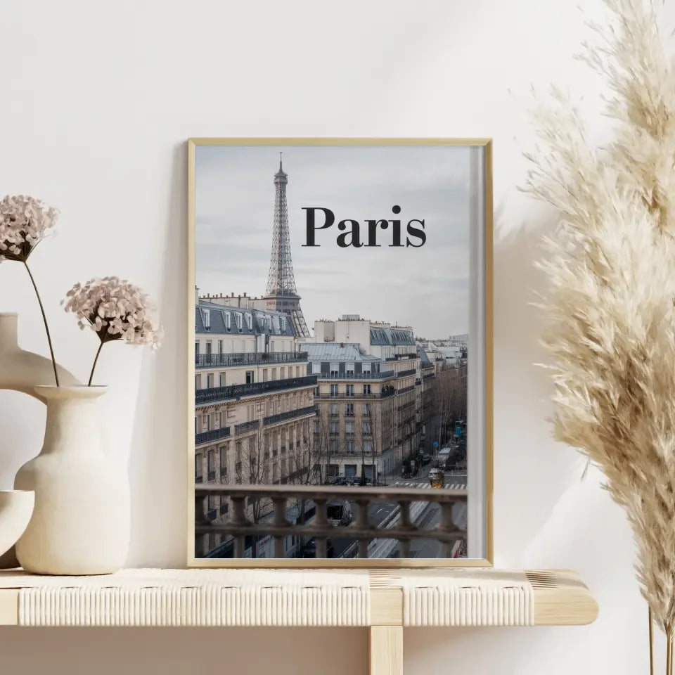 Poster mit Panoramablick auf Paris Eiffelturm und Architektur erleben