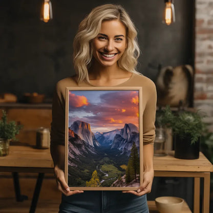 Wählen Sie bei uns aus verschiedenen Größen, um das ideale Poster für Ihre Wand zu finden. Jedes Poster wird mit viel Liebe zum Detail gefertigt und überzeugt durch brillante Farben und eine erstklassige Druckqualität. Gestalten Sie Ihre Wände neu und setzen Sie einen starken Akzent mit dem Poster Yosemite Nationalpark Panoramafoto zur Golden Hour.