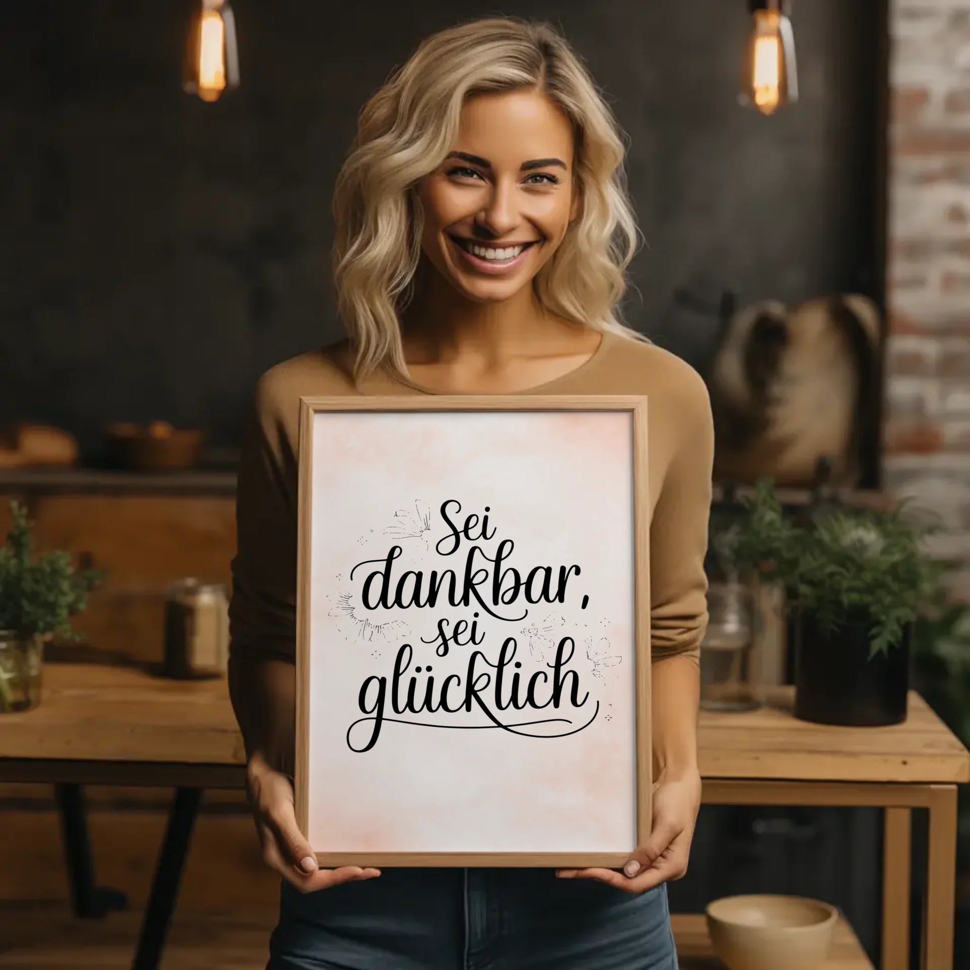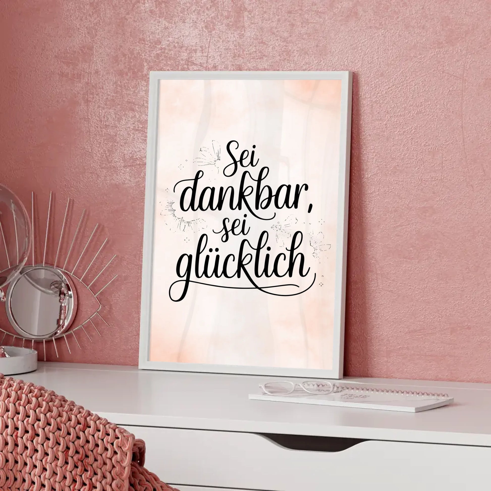Entdecke unser einzigartiges Poster mit Spruch 'Sei dankbar, sei glücklich', das sich perfekt für jeden Anlass eignet! Ob als Geschenk für Freunde, Familie oder einfach als persönliches Motivationswerk in Deinem Zuhause – dieses Spruchposter bringt Freude und Positive Vibes in jeden Raum. Du hast die Möglichkeit, das Hintergrundbild individuell anzupassen und so Dein ganz persönliches Poster mit Spruch selbst gestalten zu können.