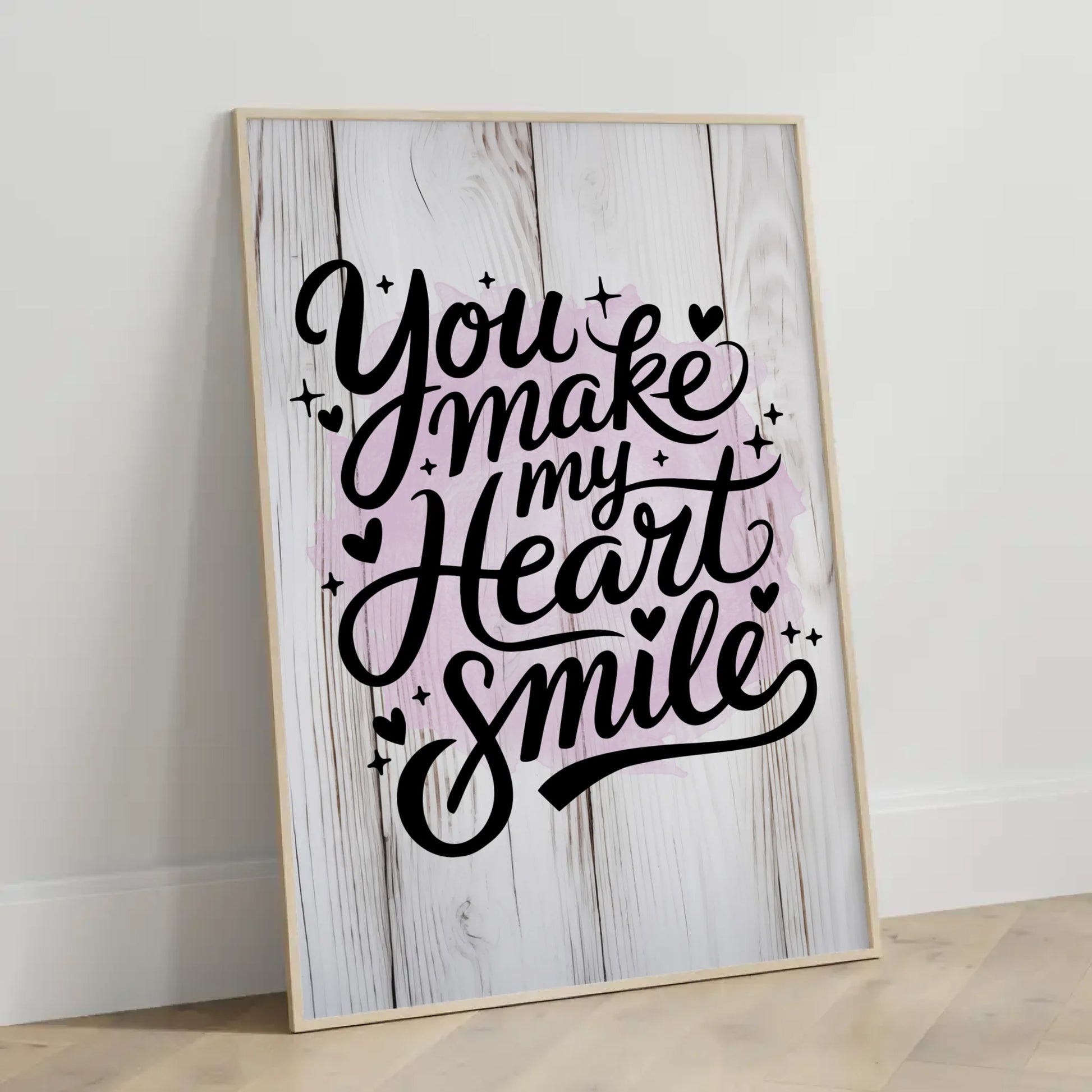 Mache jetzt den nächsten Schritt und kreiere das perfekte Geschenk mit dem Poster Mit Spruch You make my heart smile personalisiert. Verschenke ein Stück Glück!