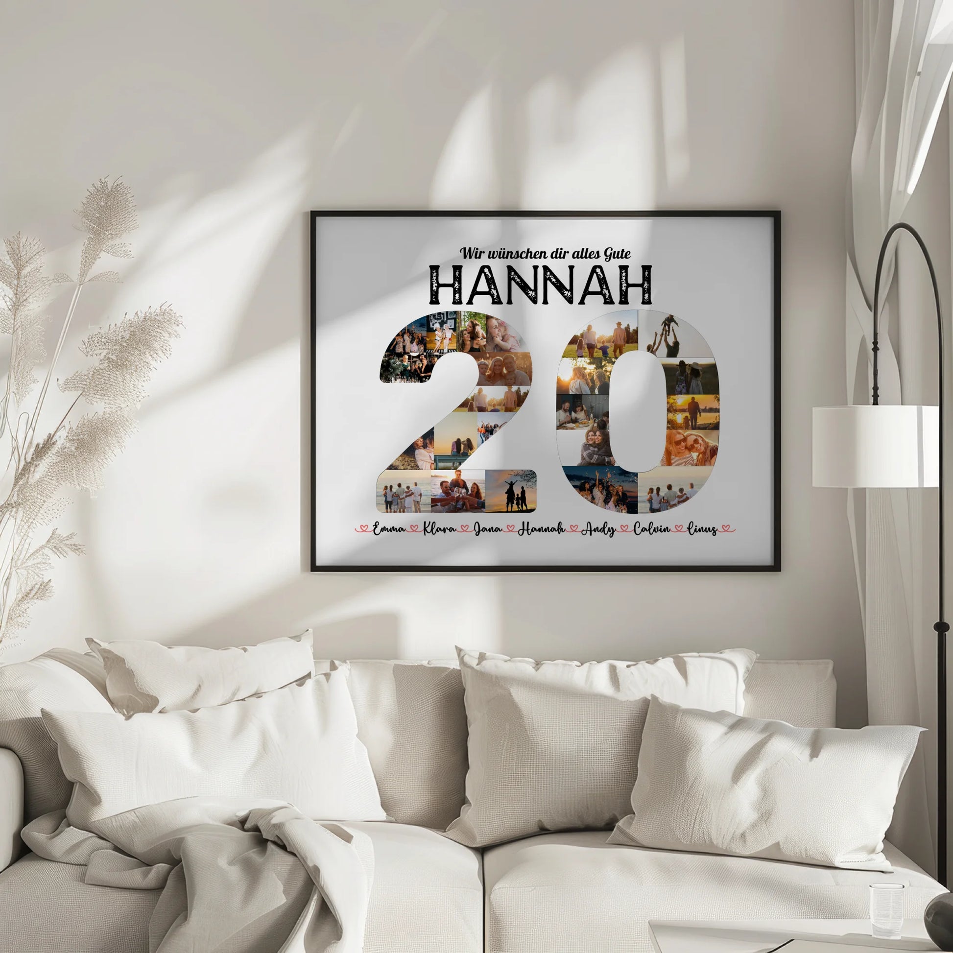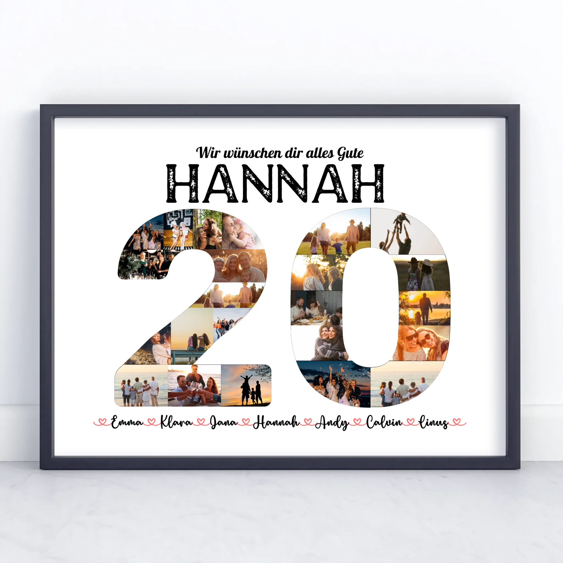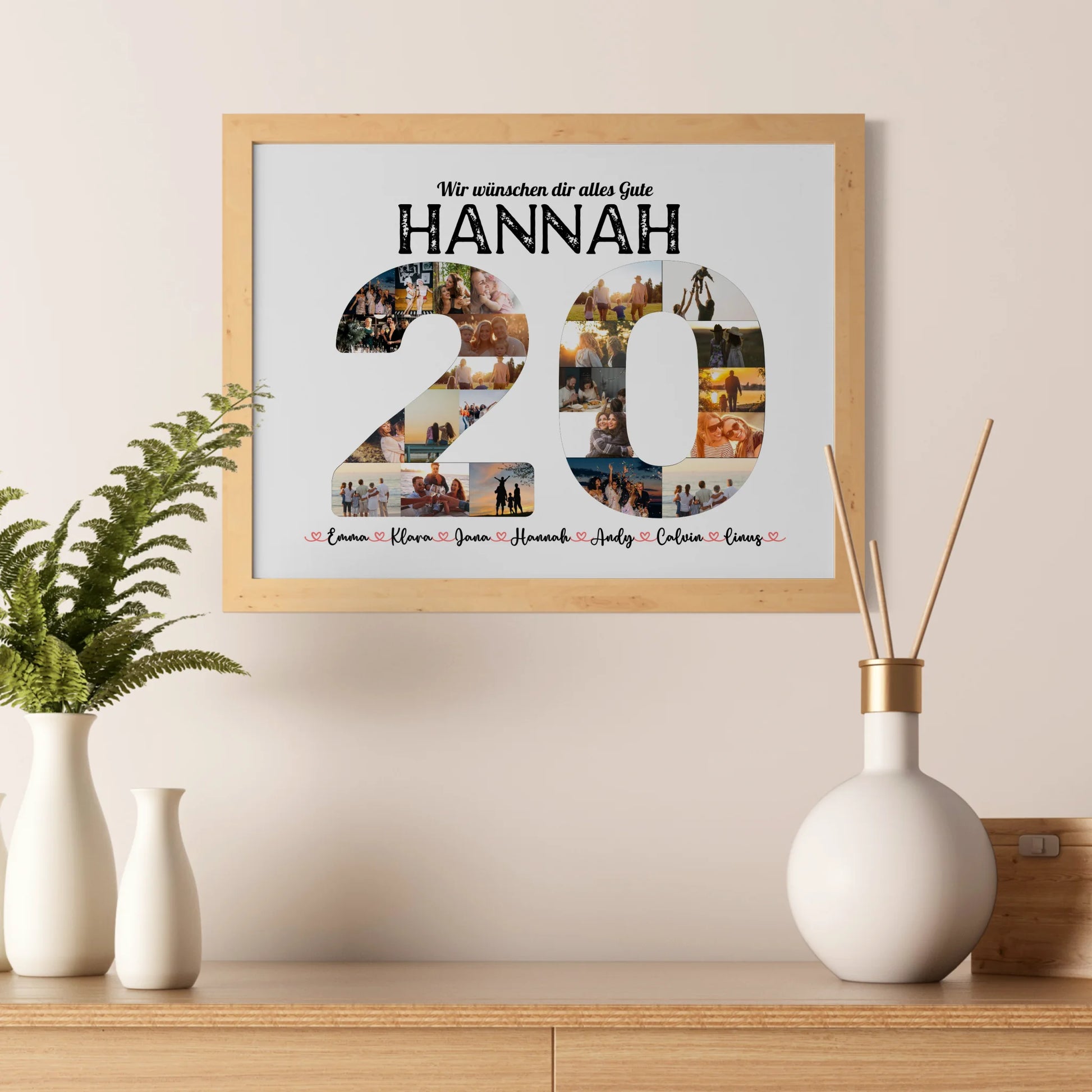 Unser Poster personalisiert 20 Geburstag mit Name & Fotos in Zahlen
