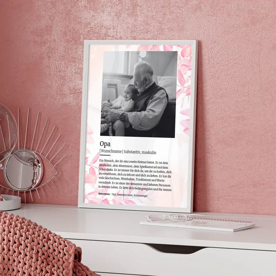 Du suchst ein schönes und individuelles Geschenk? Dann ist unser Poster personalisiert Definition Opa Mit Name das perfekte personalisierbare Geschenk.
