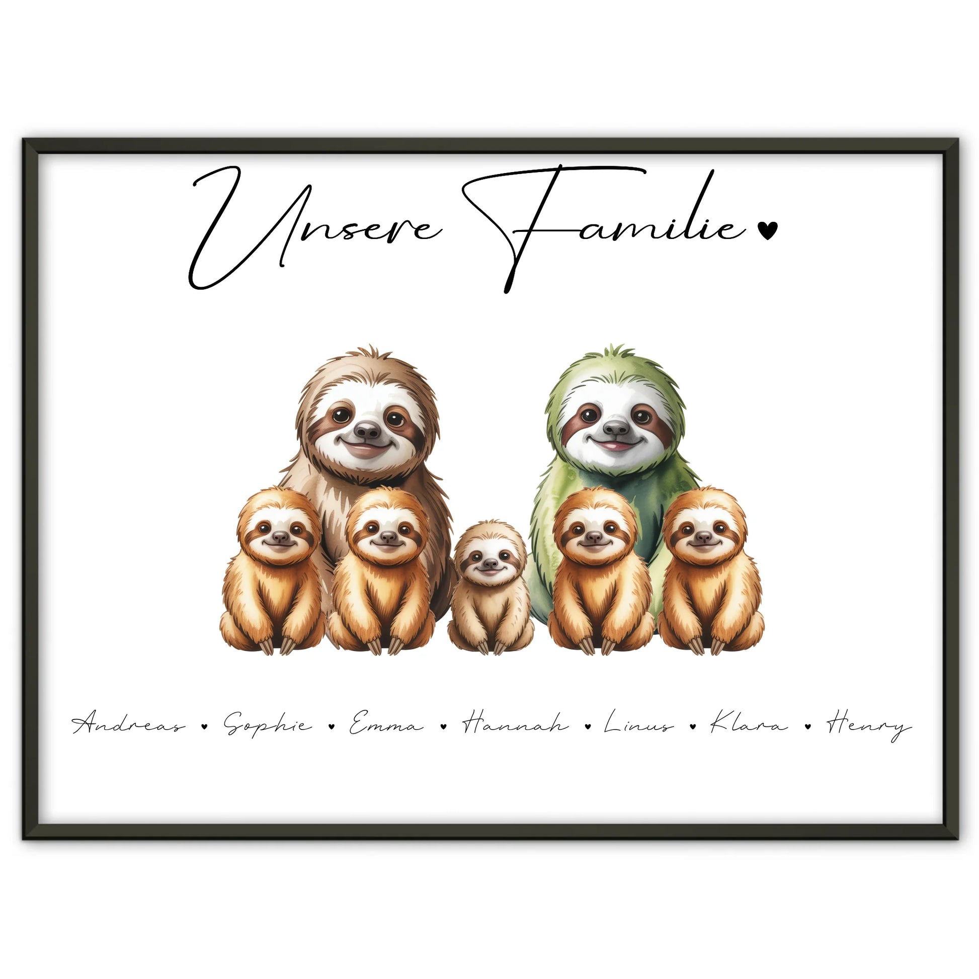 Poster Personalisiert Familie Faultier Familienporträt Geschenk für Oma Opa Mama Papa