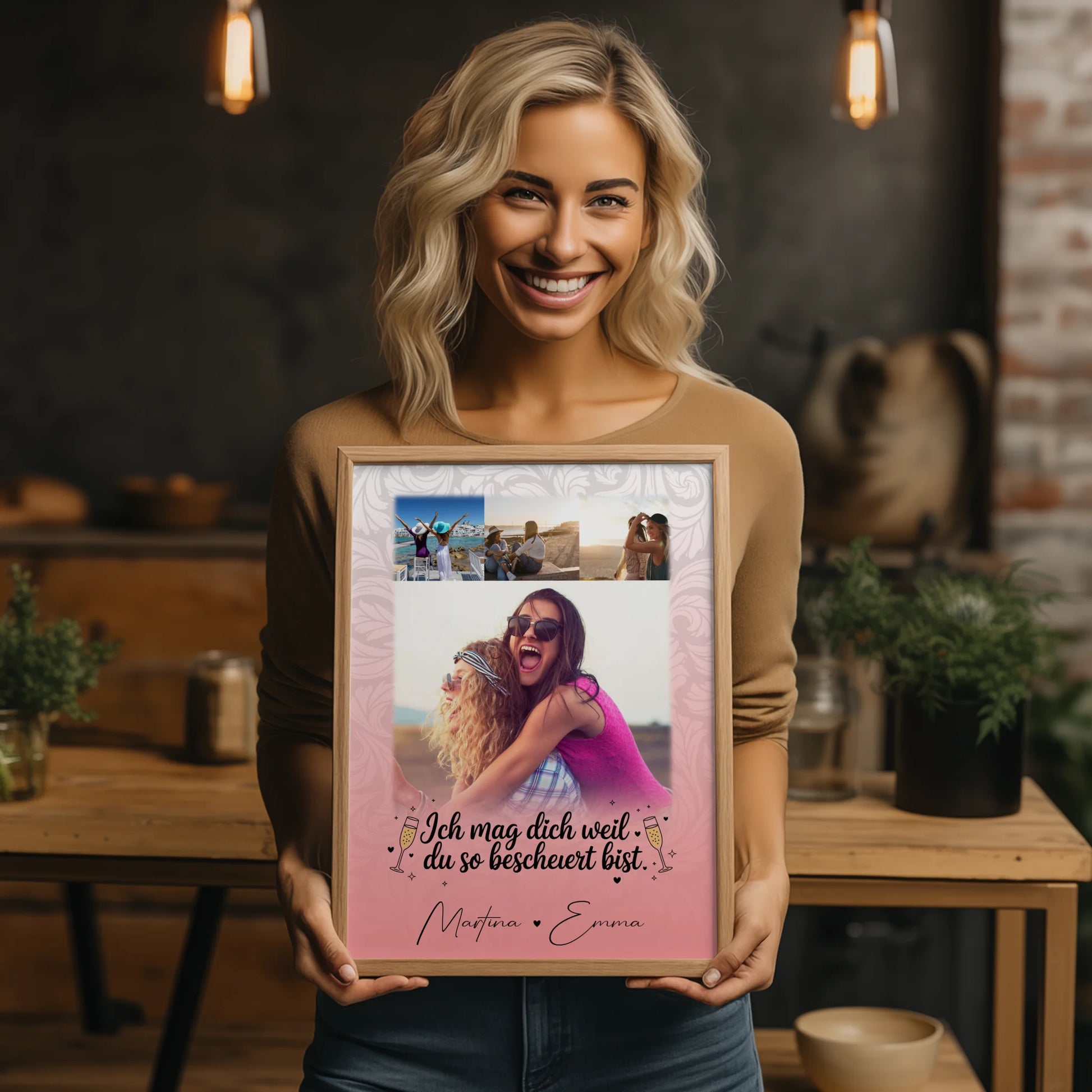 Überrasche deine beste Freundin zum Geburtstag mit diesem persönlichen und lustigen Poster. Es ist eine wundervolle Erinnerung an eure Freundschaft und zaubert ihr garantiert jeden Tag ein Lächeln ins Gesicht. Zeige ihr, wie viel sie dir bedeutet – auf eine Art, die so einzigartig ist wie sie selbst. Bestelle jetzt euer personalisiertes Freundinnen-Poster und halte eure unbezahlbaren Momente für immer fest!