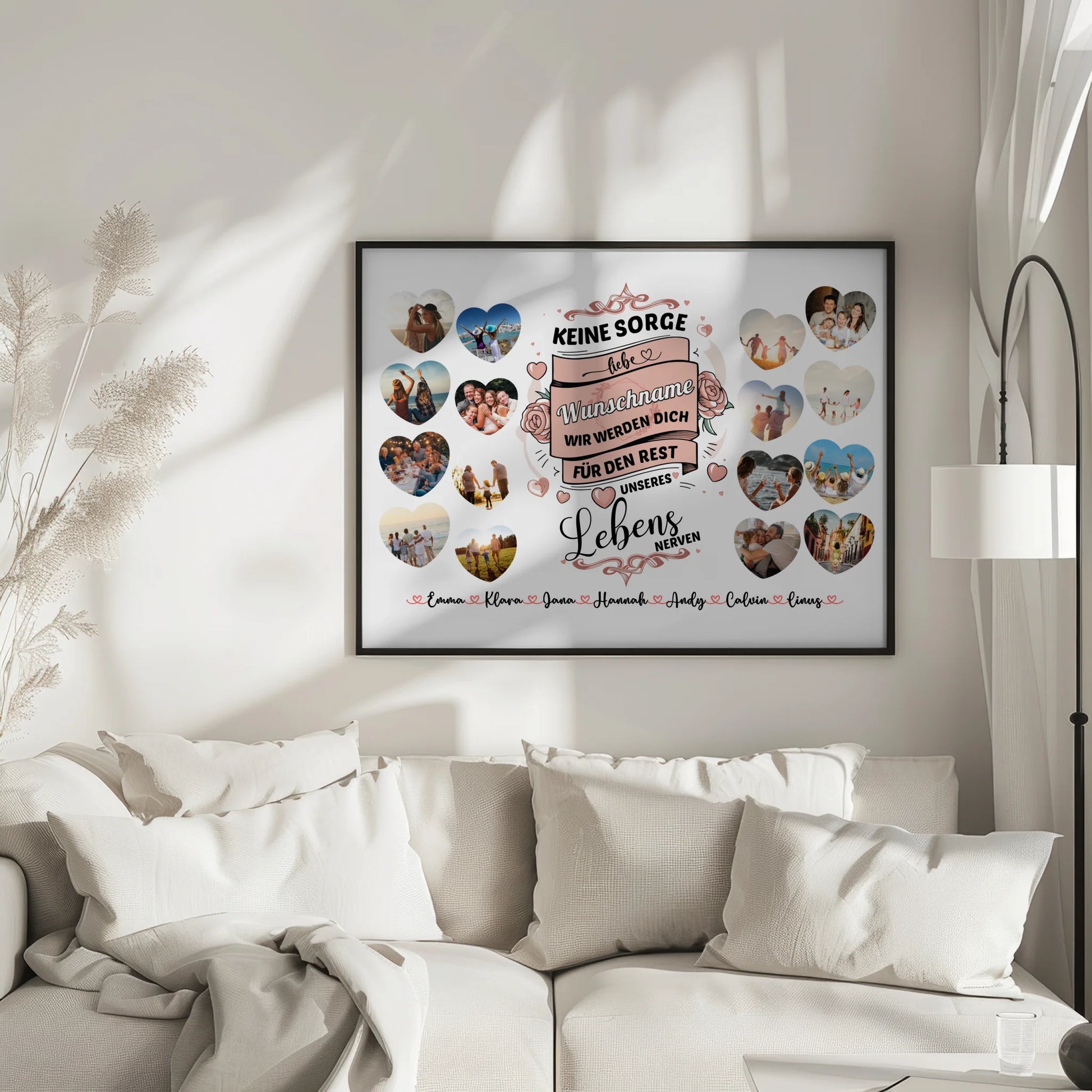 Poster personalisiert Keine Sorge Wunschname 8 Fotos in Herzform