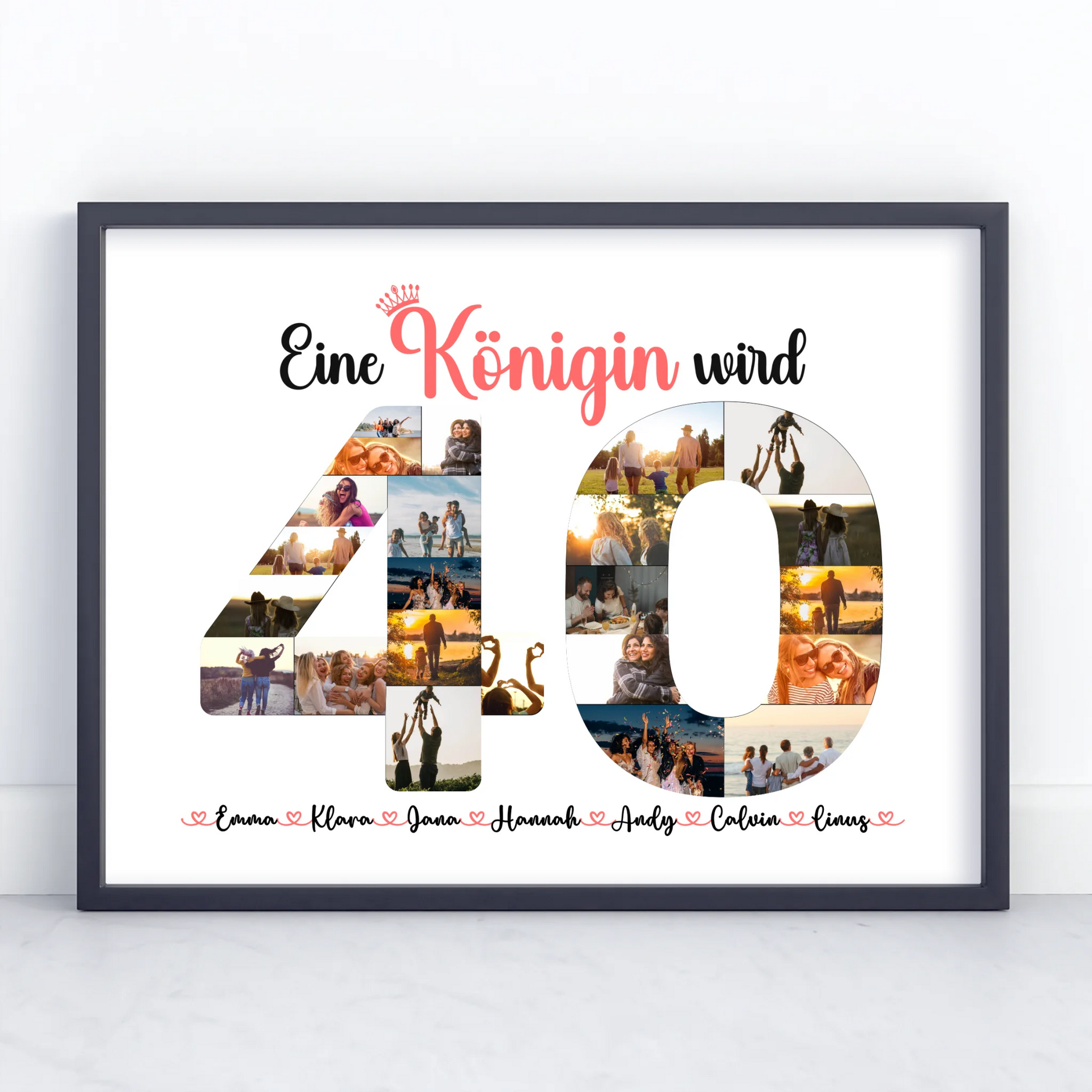 Du suchst ein tolles Geschenk? Dann ist Unser Poster personalisiert Königin wird 40 Geburtstag mit Fotos in Zahlen ein schönes personalisiertes Geschenk.