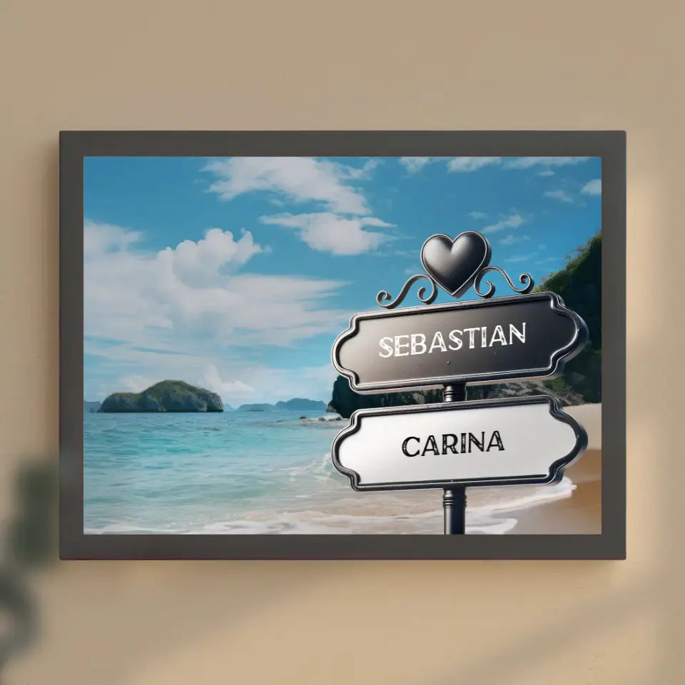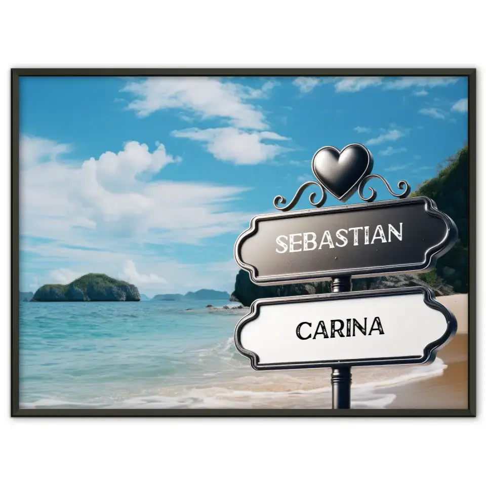 Poster personalisiert Wegweiser Insel Paradies Strand mit Namen