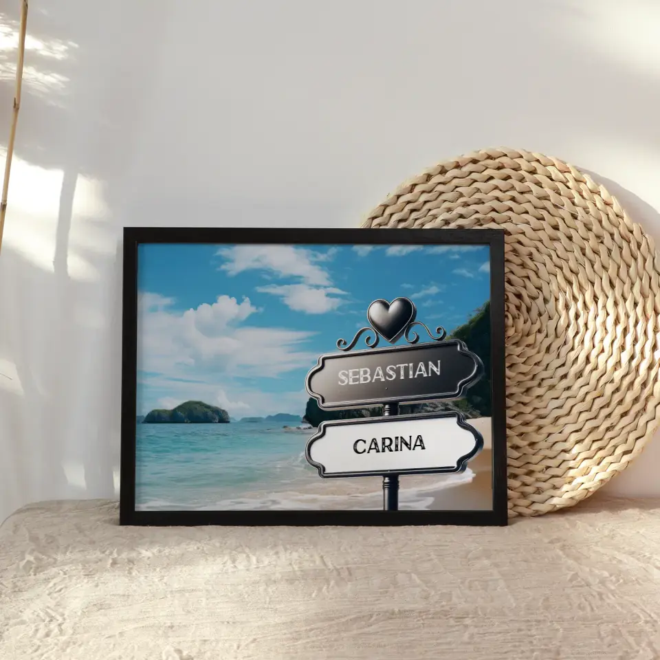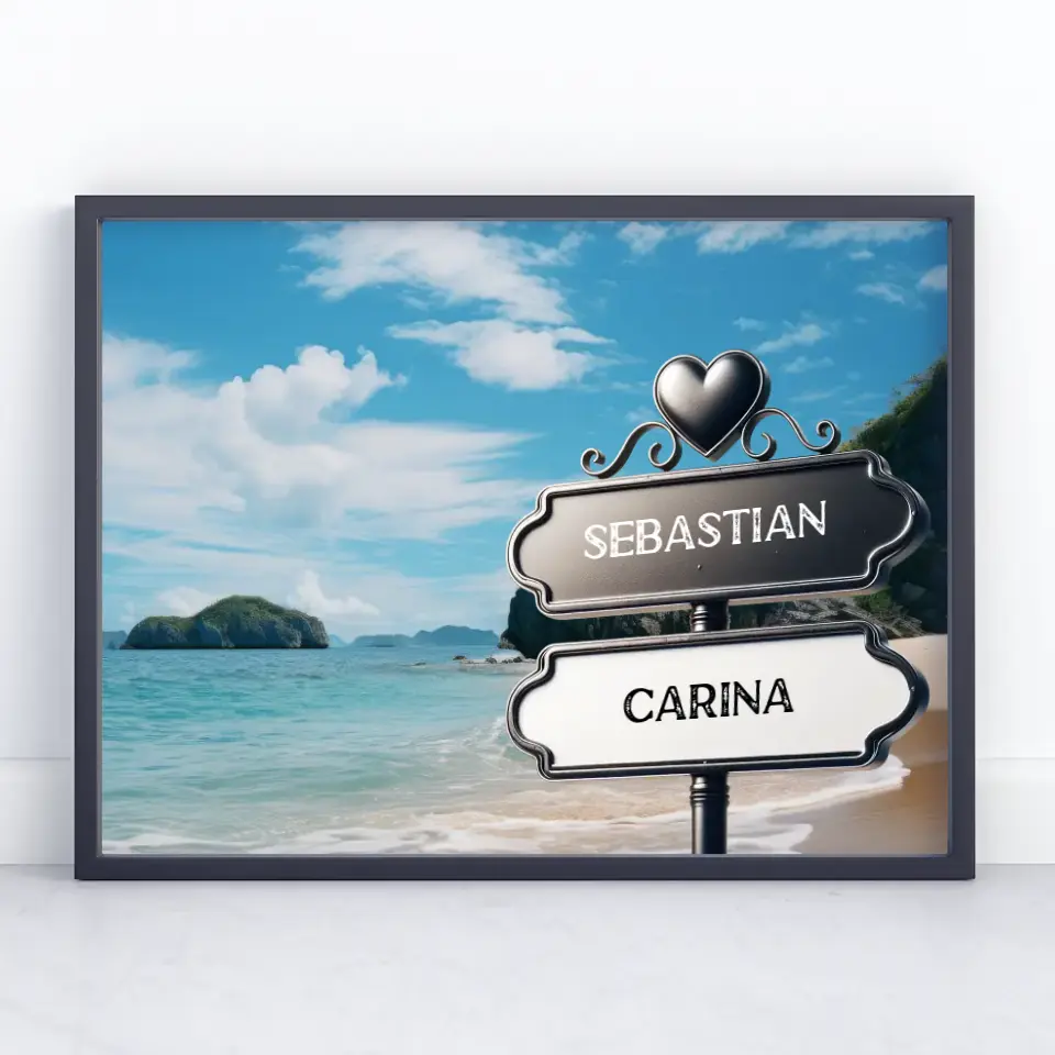 Du möchtest mal wieder etwas einzigartiges verschenken? unser Poster personalisiert Wegweiser Insel Paradies Strand mit Namen das perfekte personalisierbare Geschenk.