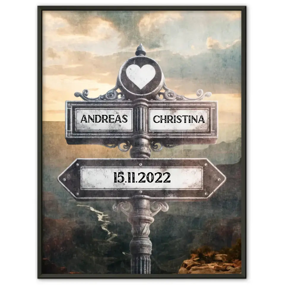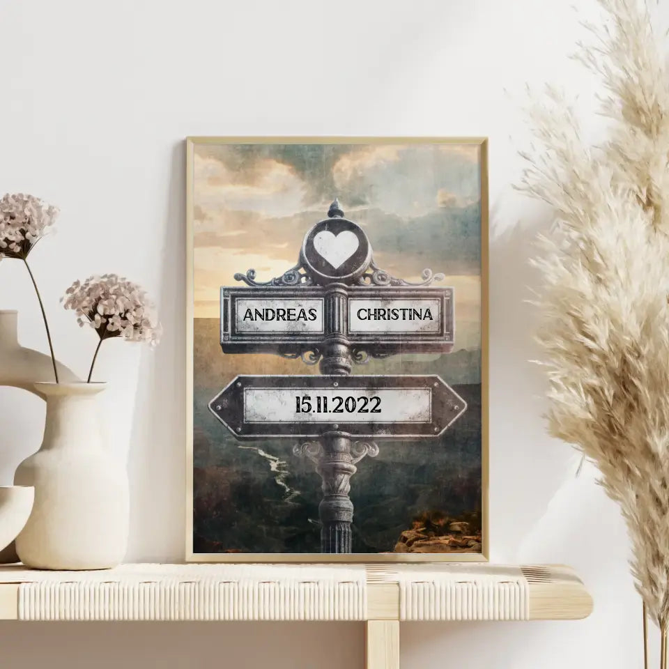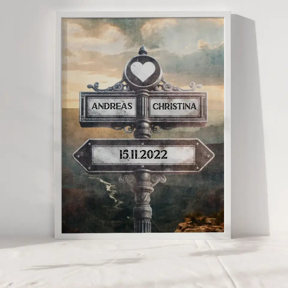 Poster personalisiert Wegweiser mit Herz Grand Canyon Vintage für Paare