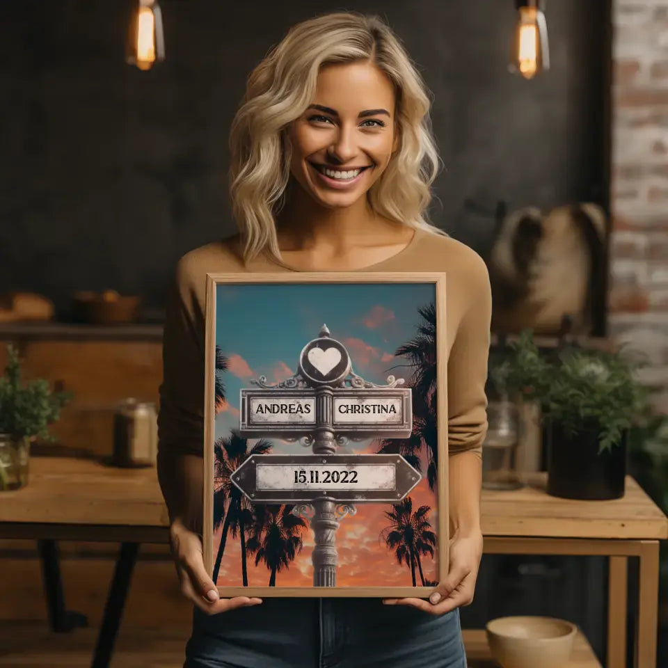 Poster personalisiert Wegweiser Palmen mit Namen & Datum