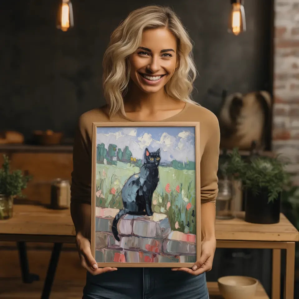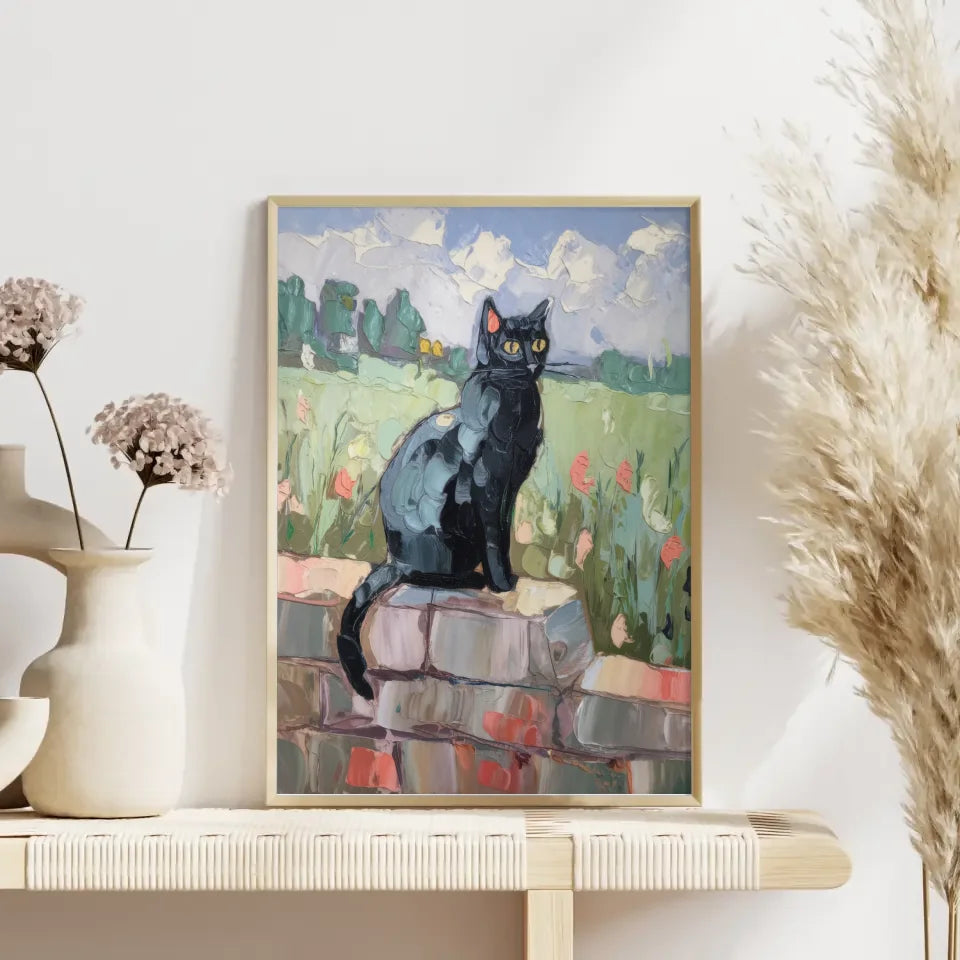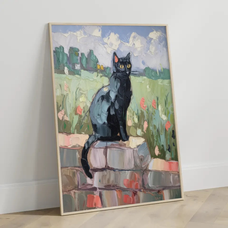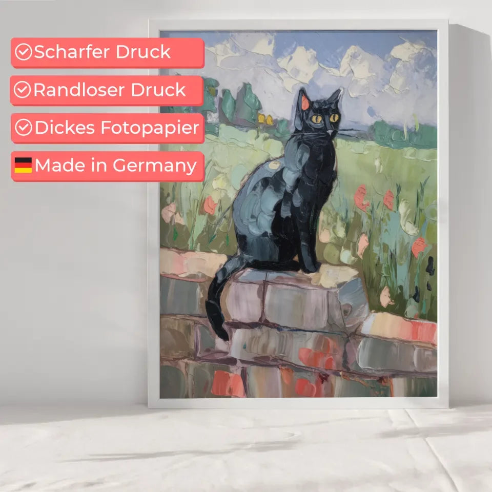 Kreieren Sie mit unserem Poster schwarze Katze auf Steinmauer im Impressionismus eine elegante Umgebung, die Ihre Gäste beeindrucken wird. Bringen Sie Kunst in Ihr Leben und verschönern Sie Ihre Wände mit diesem exquisite Wandbild, das sowohl für Kunstliebhaber als auch für Katzenfreunde ein wahrer Blickfang ist.