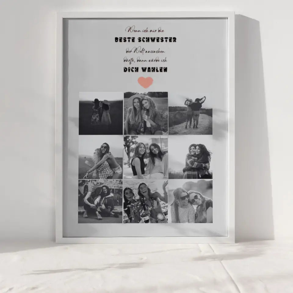 Poster Schwester Personalisiert Beste Schwester der Welt mit 9 Fotos & Eigener Spruch
