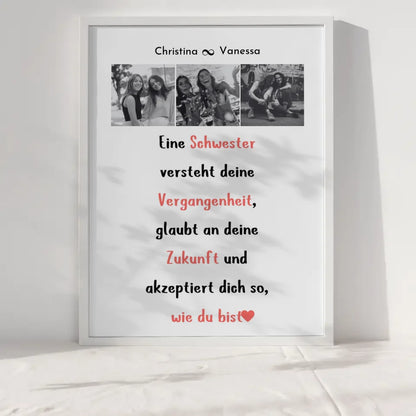 Du möchtest mal wieder etwas einzigartiges verschenken? unser Poster Schwester Personalisiert Eine Schwester versteht 3 Fotos Black & White das perfekte personalisierbare Geschenk.