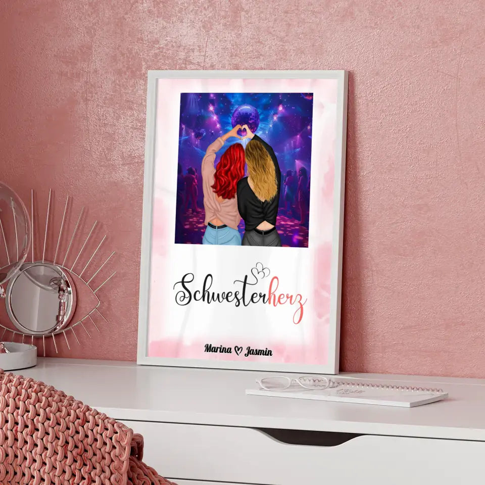 Poster Schwester Personalisiert Schwesterherz Disko Party