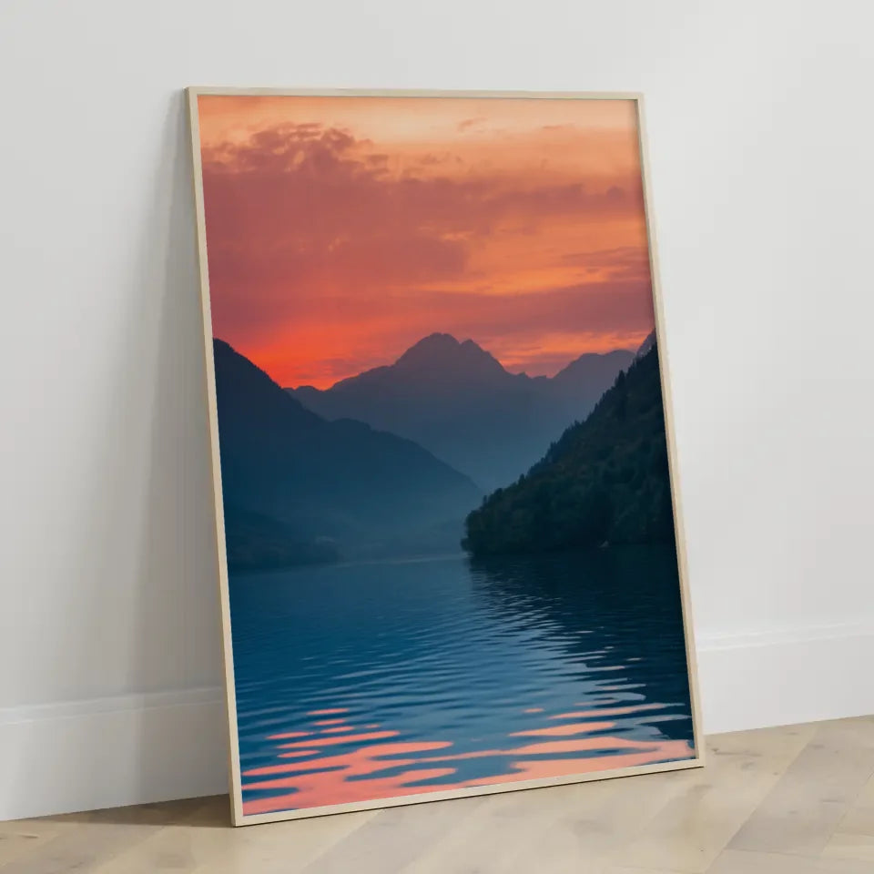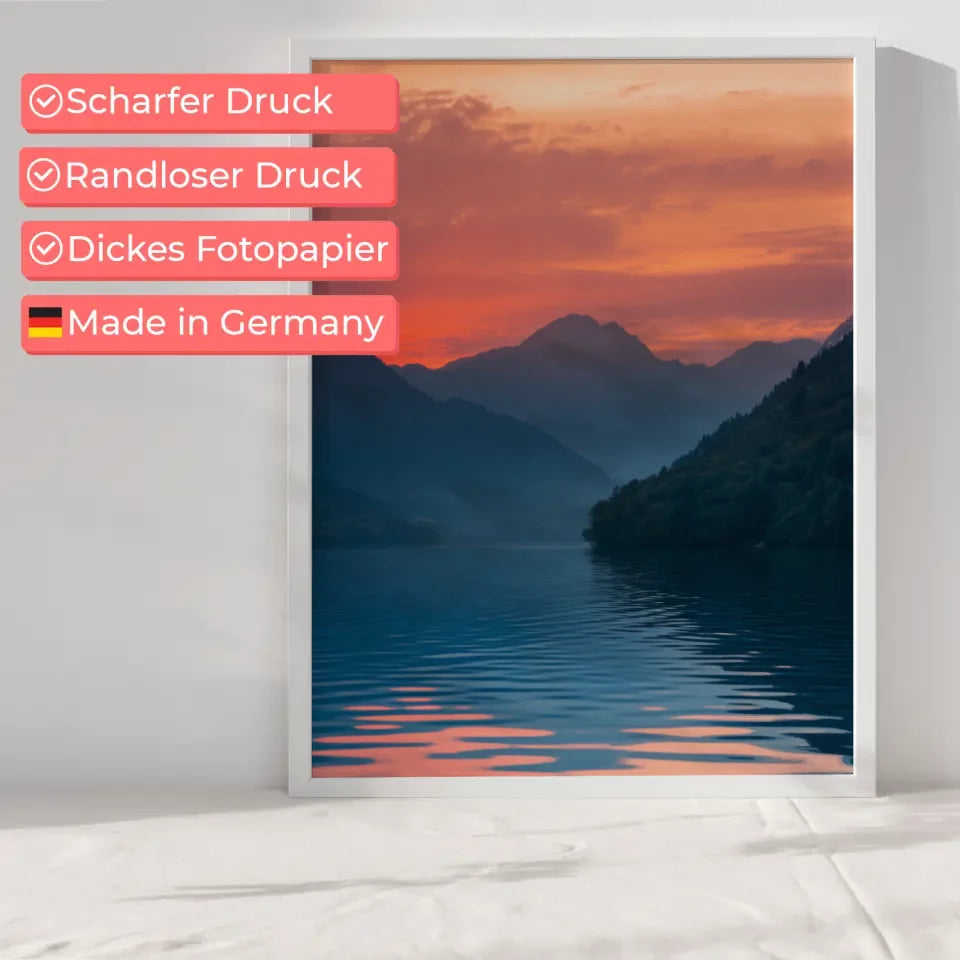 Unsere Poster sind in verschiedenen Größen erhältlich und können sowohl als Leinwanddruck als auch als hochwertiges Poster bestellt werden. Jedes Poster wird mit größter Sorgfalt gedruckt, um eine lange Haltbarkeit und brillante Farben zu gewährleisten. Holen Sie sich das Poster Sonnenaufgang am See und lassen Sie die Natur direkt in Ihre vier Wände einziehen.