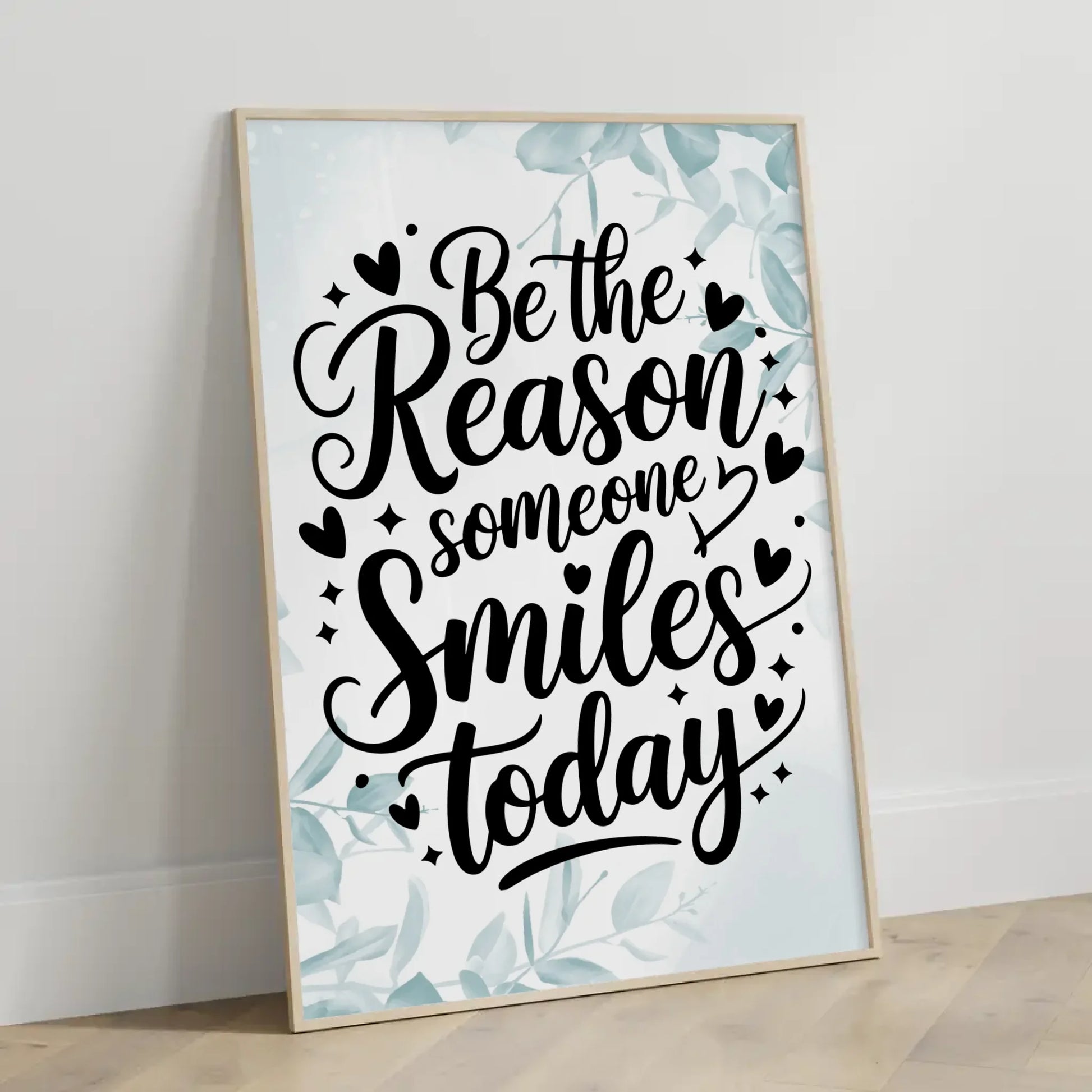 Das Poster, auch bekannt als Spruchposter oder Motivationssprüche Poster, bringt positive Energie in jedes Zuhause. Mit dem inspirierenden Spruch 'Be the reason someone smiles today' setzt du ein Zeichen der Wertschätzung und Freundschaft. Mach dein Geschenk zu etwas Besonderem, indem du das Poster mit Spruch selbst gestalten kannst. Ob für Freunde, Familie oder Kollegen - die Geschenkidee wird garantiert für Begeisterung sorgen!