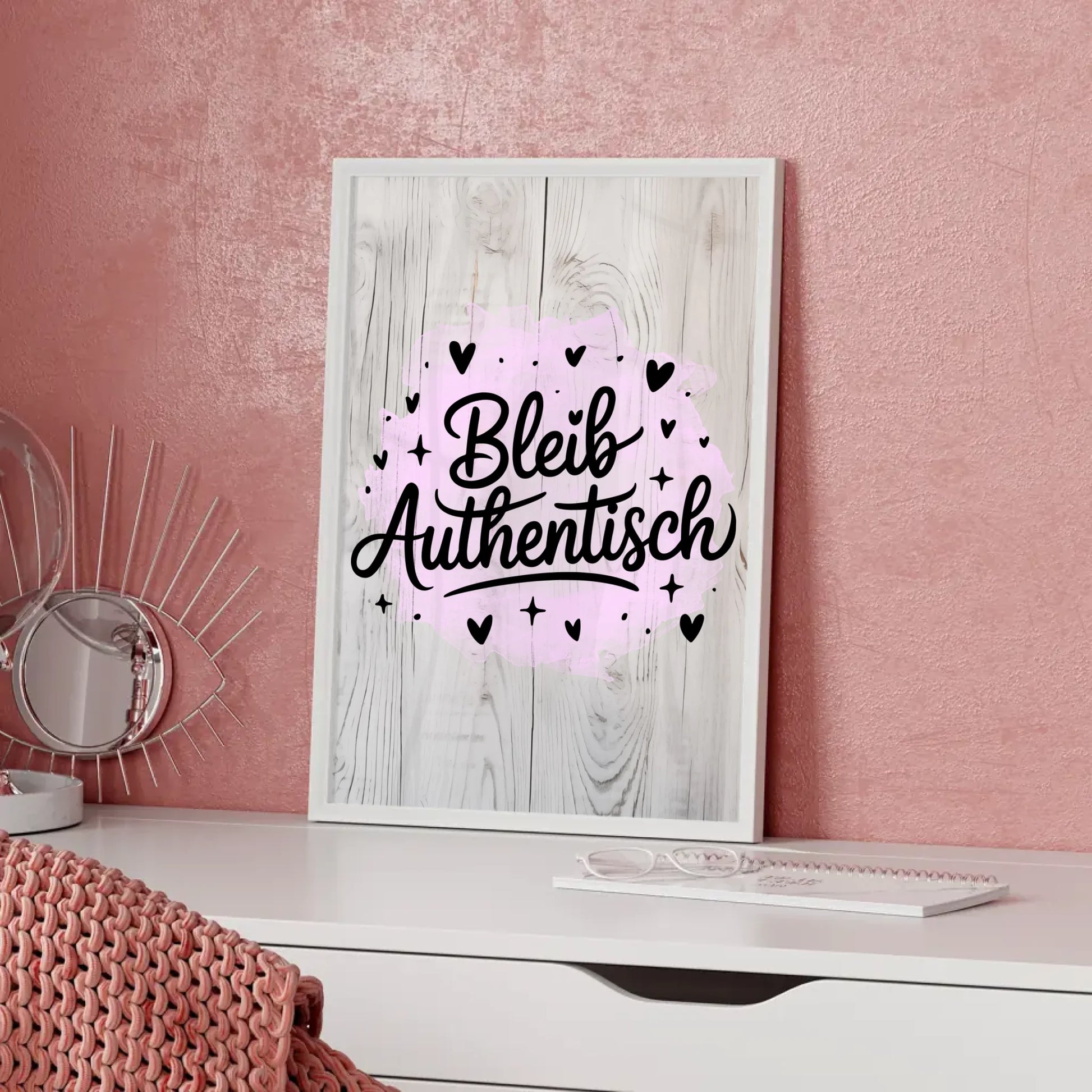 Poster Spruch Bleib authentisch für dein Zuhause gestalten