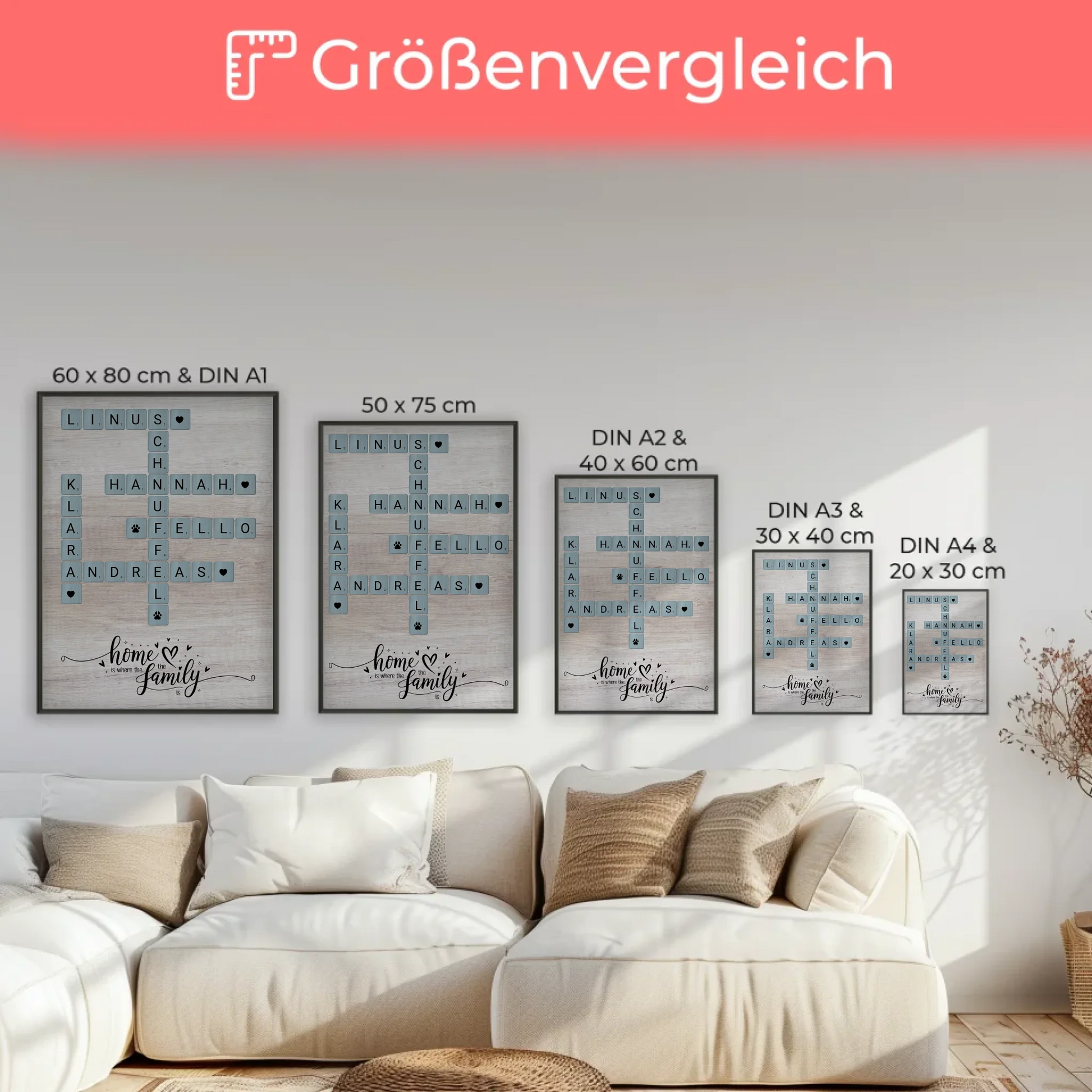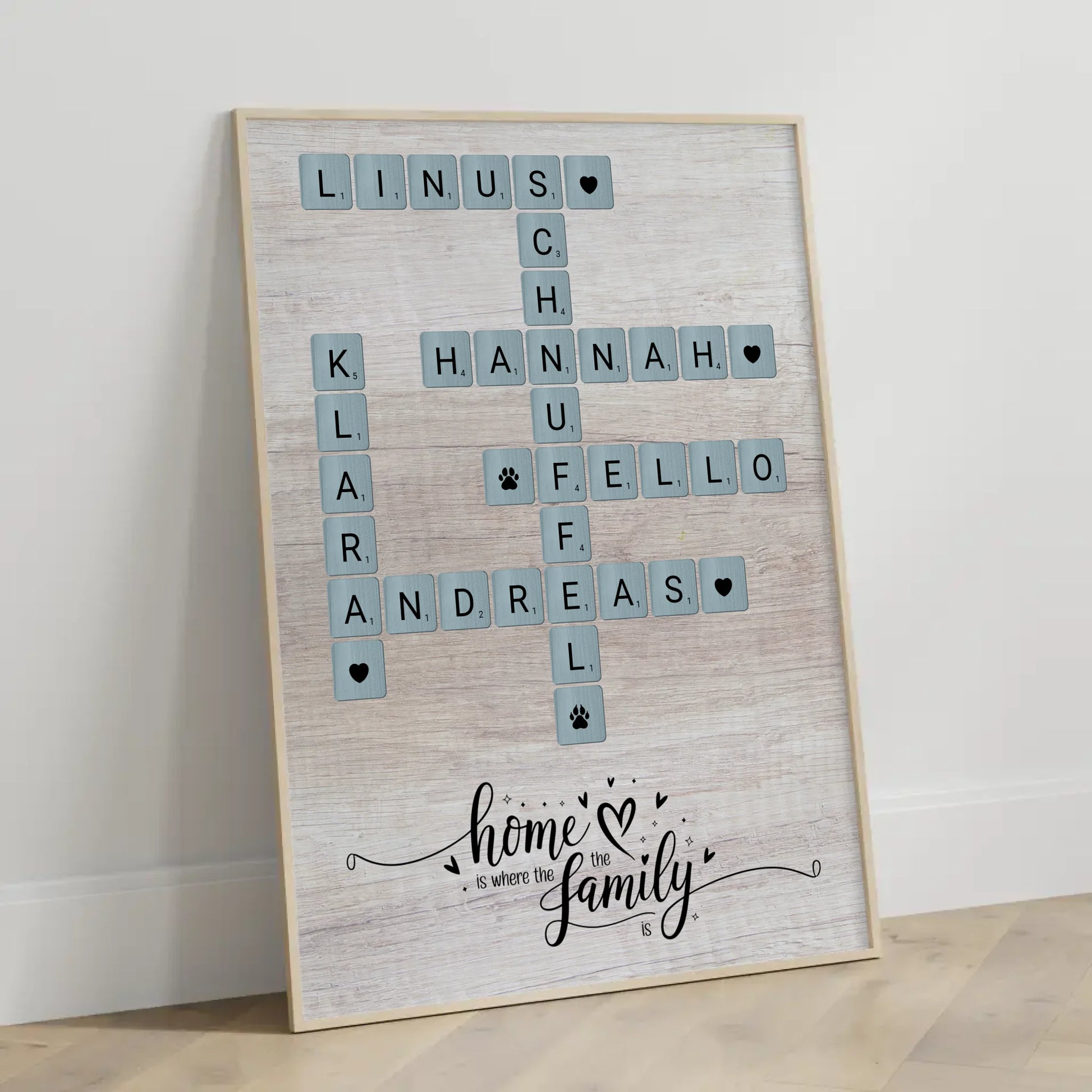 Suchst du nach einer einzigartigen Geschenkidee für deine Liebsten? Unser Poster Spruch Familie mit dem Motto Home is where the family is im Scrabble Style ist die ideale Wahl! Dieses personalisierte Poster bringt das Herz deiner Familie zum Strahlen und verwandelt jeden Wohnraum in ein gemütliches Zuhause.