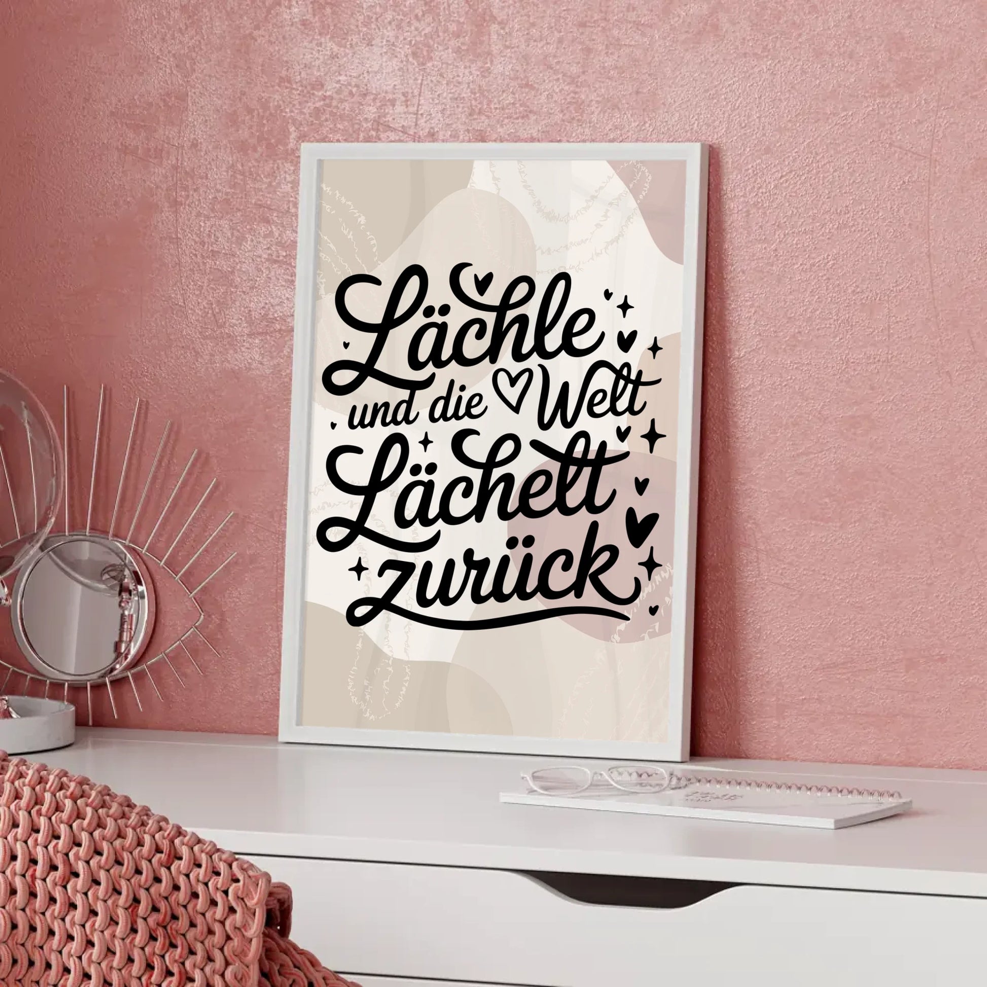 Poster Spruch Lächle und die Welt lächelt zurück - Deine persönliche Geschenkidee