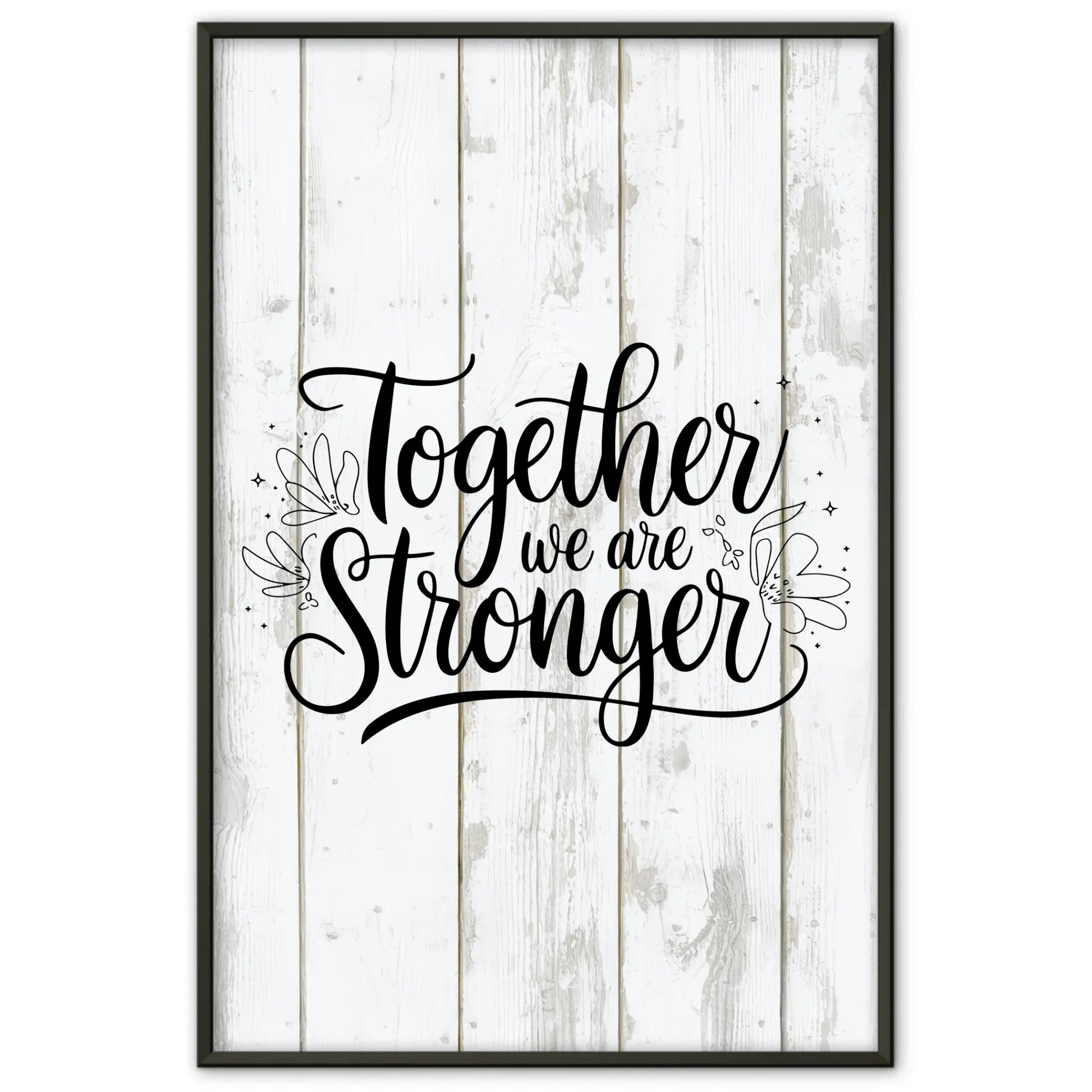 Das Spruchposter bietet dir die Möglichkeit, deinen Lieblingsmotivationsspruch in wunderschöner Gestaltung zu verewigen. Mit dem Poster Spruch Together we are stronger schaffst du eine inspirierende Atmosphäre und stärkst die Bindung zu deinen Liebsten. Zögere nicht länger und gestalte dein persönliches Motivationssprüche Poster, das für immer in Erinnerung bleibt!