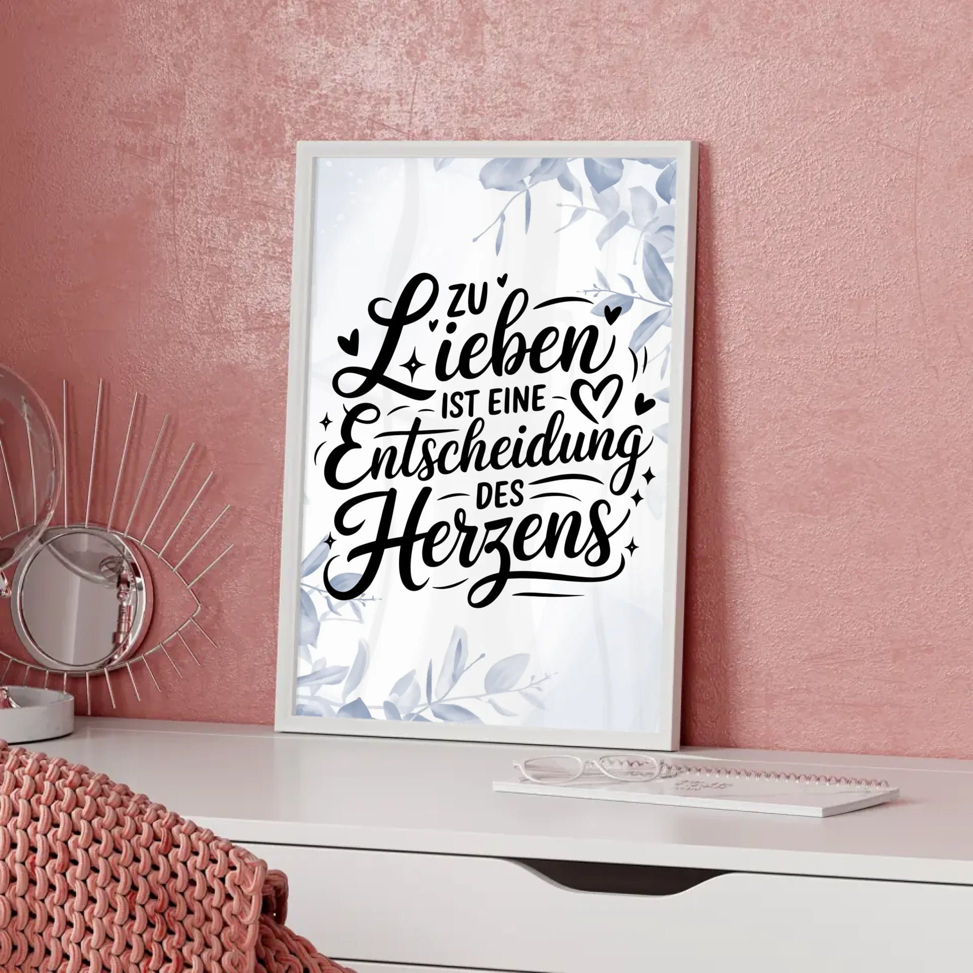 Poster Spruch Zu lieben ist eine Entscheidung des Herzens