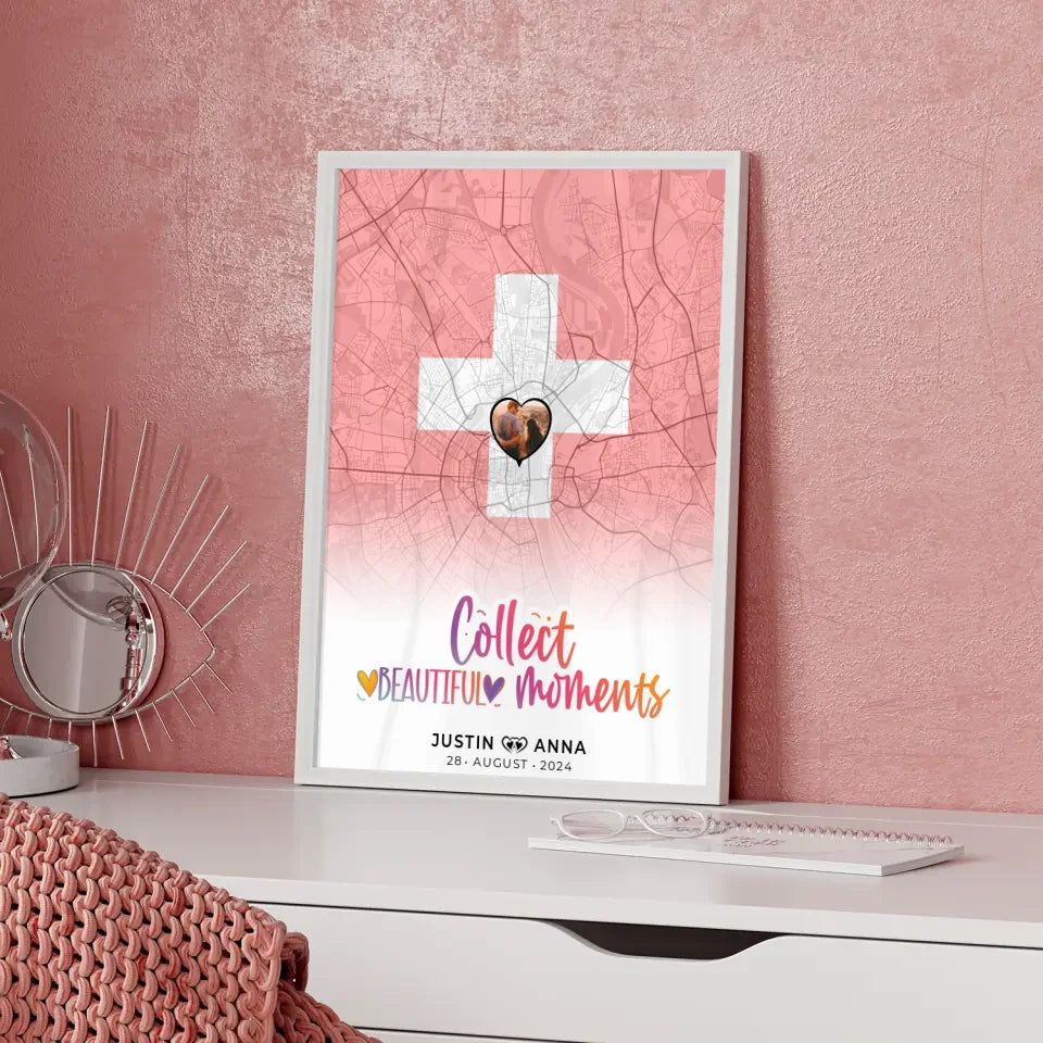 Poster Stadtkarte Schweiz für Paare Collect Beautyful Moments