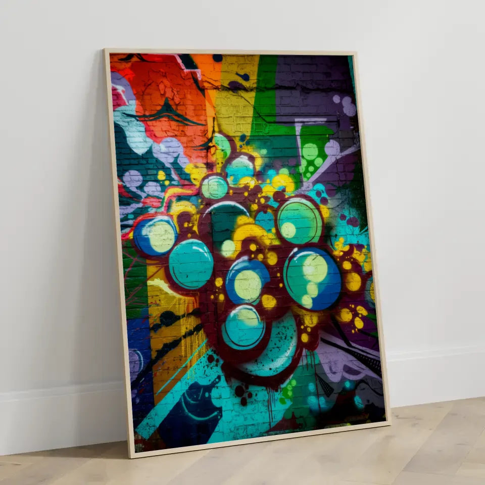 Poster urbanes Graffiti lebendige Farben auf Ziegelwand