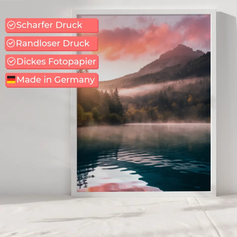 Durch die Verwendung hochwertiger Drucktechniken und langlebiger Materialien garantieren wir, dass Sie lange Freude an Ihrem Poster haben werden. Holen Sie sich die inspirierende Ruhe eines Sonnenaufgangs über einem idyllischen See nach Hause und verwandeln Sie Ihre Wände in ein harmonisches Kunstwerk. Bestellen Sie jetzt Ihr Poster und bringen Sie die Faszination der Natur in Ihr Zuhause!