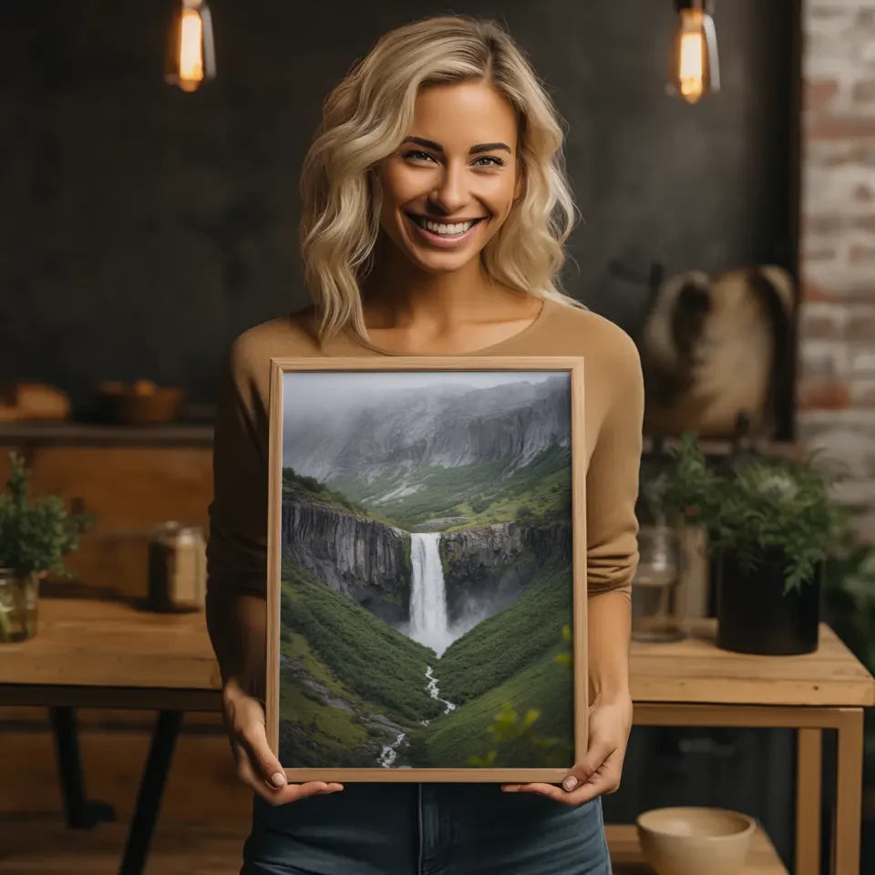 Verleihen Sie Ihrem Zuhause einen Hauch von skandinavischem Flair mit unserem Poster Vøringsfossen Wasserfall Norwegen. Bringen Sie die Schönheit der Natur in Ihre Wände und machen Sie Ihr Wohnzimmer, Schlafzimmer oder Büro zu einem Ort der Entspannung und Inspiration. Jedes Poster wird in hoher Qualität gedruckt und ist ideal, um jeden Raum zu dekorieren.
