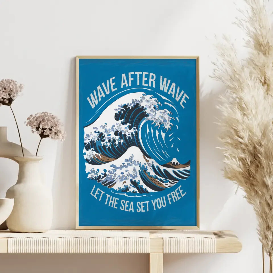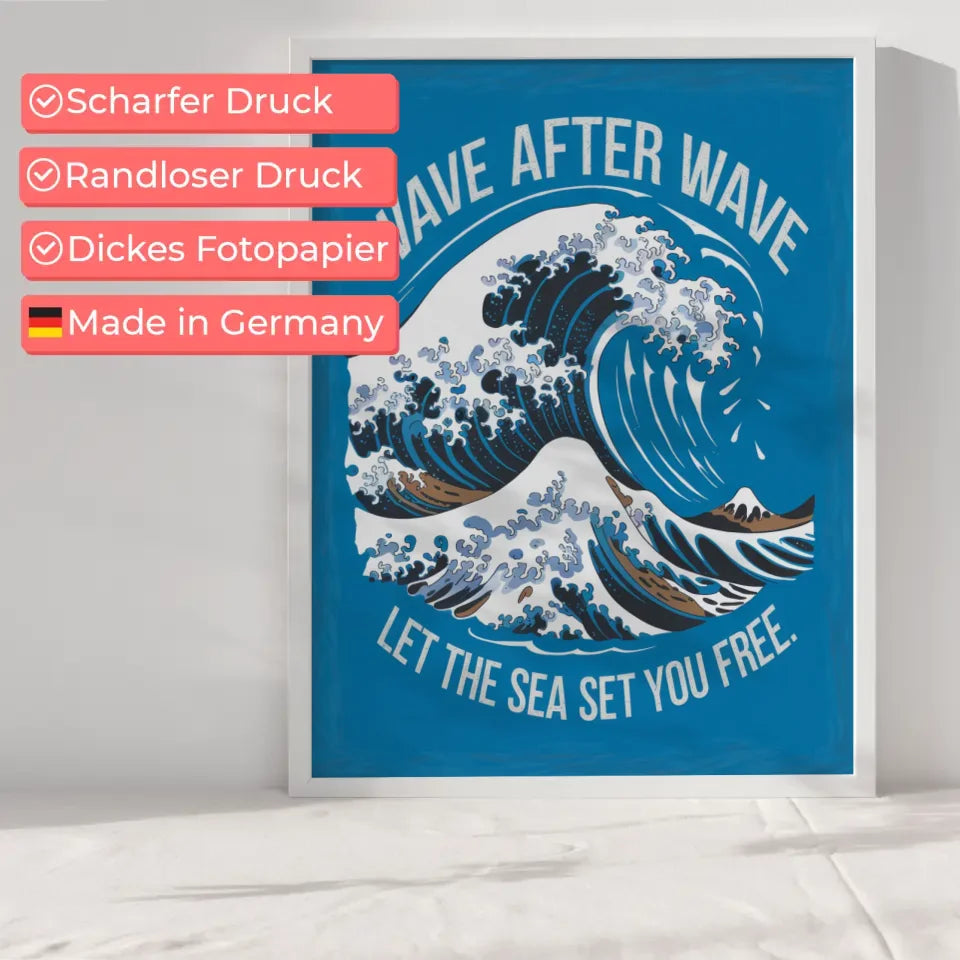 Poster Welle dynamisch lebendig mit Spruch let the sea set you free