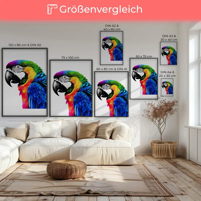 Die abstrakte Kunst des Regenbogen Papagei Posters ist ein wahres Meisterwerk der Handwerkskunst. Die aufwendigen Details und die perfektionistische Ausführung machen es zu einem besonderen Stück für Tierliebhaber und Kunstenthusiasten gleichermaßen. Ob in Ihrem Wohnzimmer, Schlafzimmer oder Arbeitsbereich, dieses Kunstwerk wird garantiert zum Blickfang.