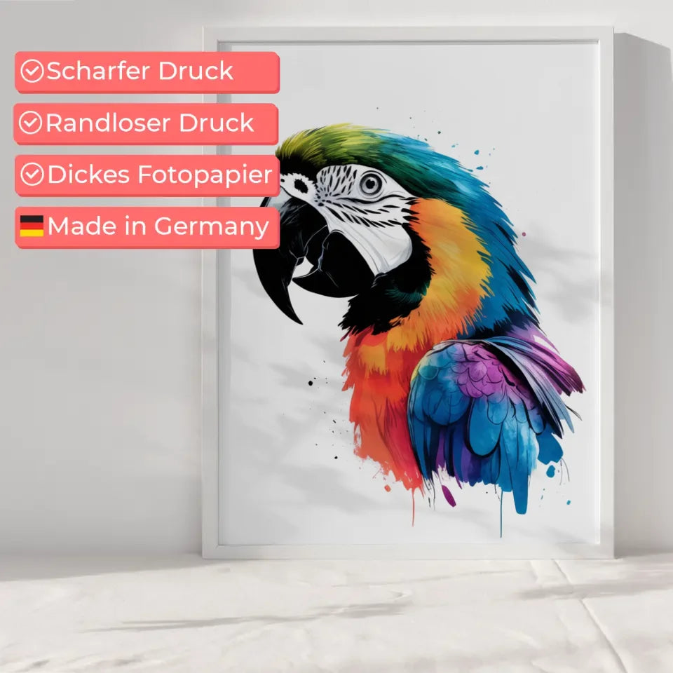 Die abstrakte Kunst des Regenbogen Papagei Posters ist ein wahres Meisterwerk der Handwerkskunst. Die aufwendigen Details und die perfektionistische Ausführung machen es zu einem besonderen Stück für Tierliebhaber und Kunstenthusiasten gleichermaßen. Ob in Ihrem Wohnzimmer, Schlafzimmer oder Arbeitsbereich, dieses Kunstwerk wird garantiert zum Blickfang.
