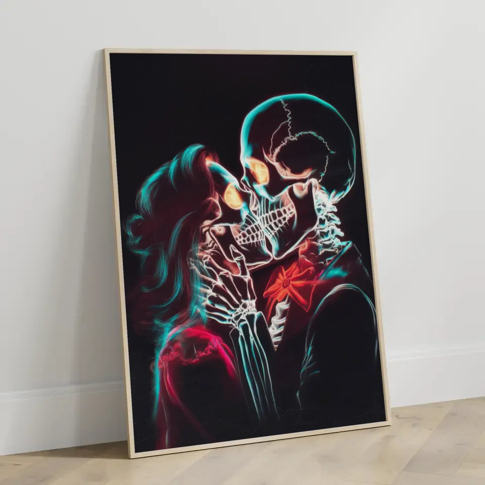 Romantischer Neon Schädel Poster für leidenschaftliche Kunstliebhaber