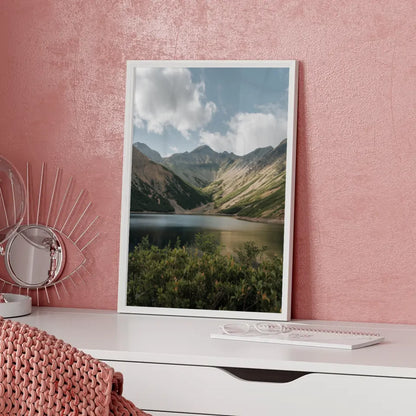 Entdecken Sie unser atemberaubendes Ruhige Berglandschaft Poster mit unberührtem See und Gipfeln, das Ihre Wände in ein Naturparadies verwandelt. Dieses hochwertige Poster zeigt eine idyllische Berglandschaft, die mit einem friedlichen See zwischen majestätischen Gipfeln besticht. Die teilweise bewölkten Himmel, die die blauen Flecken hervorheben, bringen eine sanfte Lichtstimmung in Ihr Zuhause.