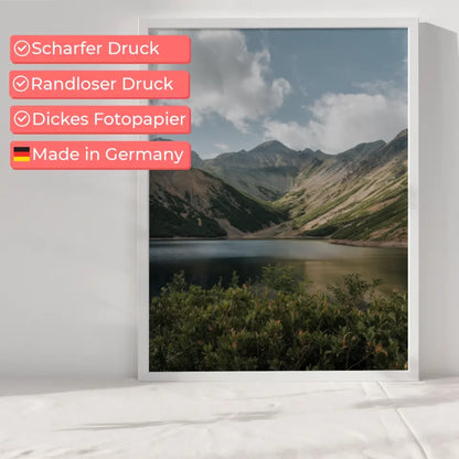 Unser Poster eignet sich perfekt für Wohnräume, Büros oder einen Ruhebereich und bringt die Schönheit der Natur direkt zu Ihnen nach Hause. Machen Sie jeden Tag zu einem Erlebnis, indem Sie die Ruhe dieser atemberaubenden Berglandschaft genießen. Holen Sie sich jetzt das Ruhige Berglandschaft Poster mit unberührtem See und Gipfeln und verwandeln Sie Ihre Wände in ein Kunstwerk der Natur!