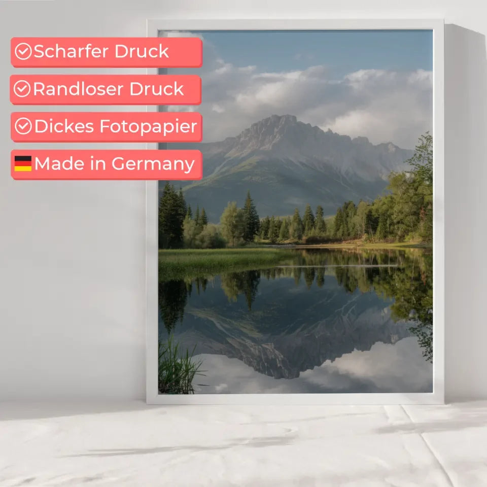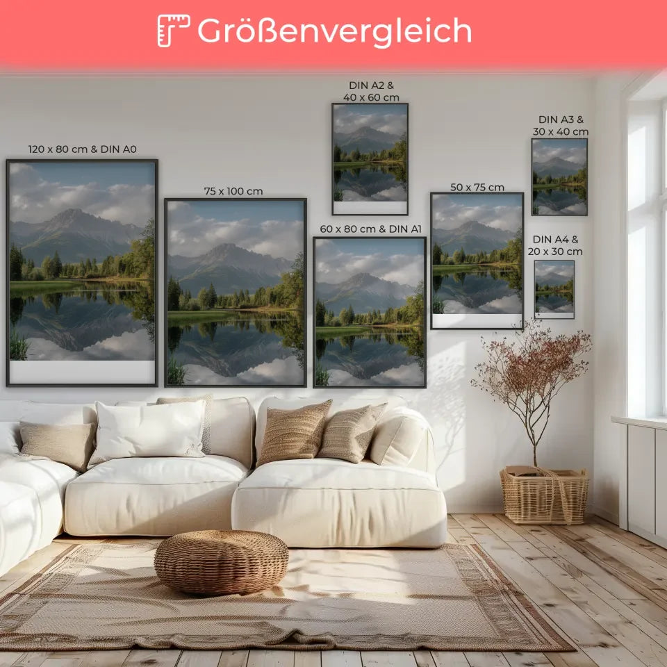 Dieses Wandbild ist nicht nur ein Blickfang, sondern auch eine hervorragende Möglichkeit, das Gefühl von Ruhe und Entspannung in Ihr Zuhause zu bringen. Egal, ob Sie ein Fan der Natur sind oder einfach nur ein schönes Poster suchen, das Ruhige Landschaft Poster mit unberührtem See und Bergen wird eine wunderbare Ergänzung für Ihre Einrichtung sein. Holen Sie sich jetzt dieses faszinierende Kunstwerk und verwandeln Sie Ihre Wände in eine Oase der Ruhe!