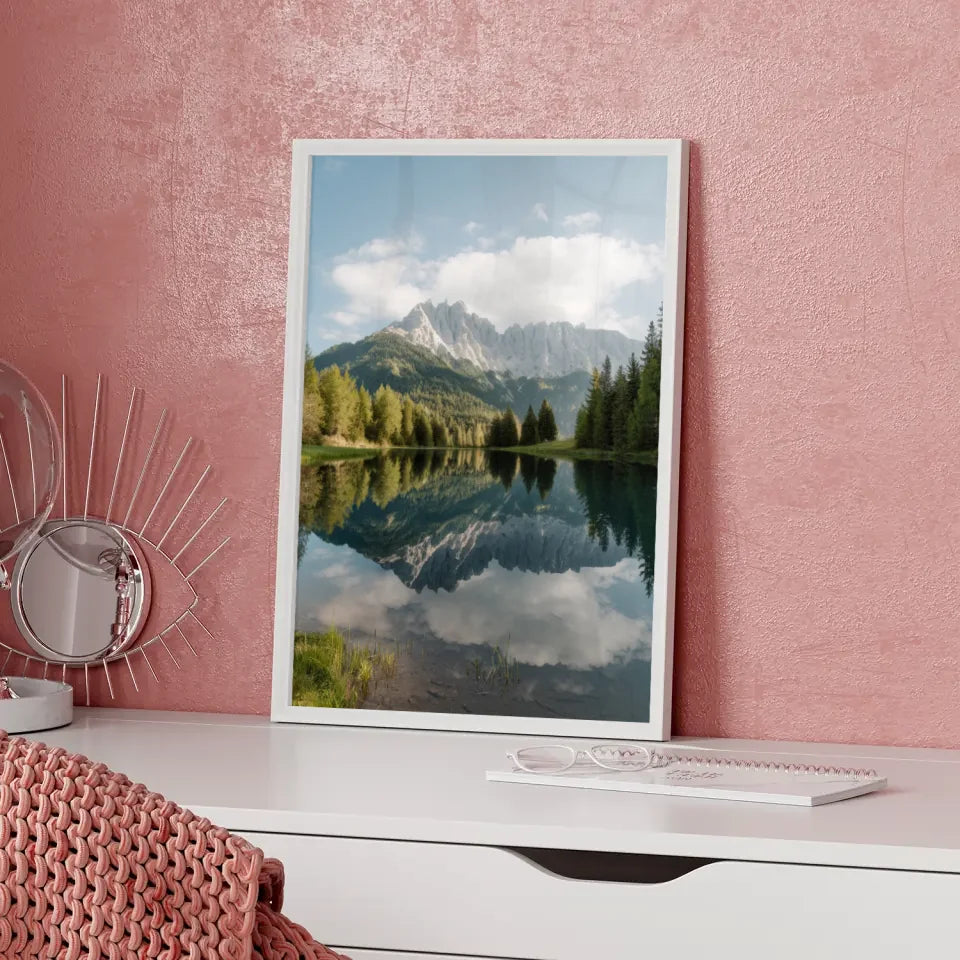 Dieses Natur-Poster eignet sich hervorragend für jeden, der eine ruhige und entspannende Atmosphäre schaffen möchte. Ob im Wohnzimmer, Schlafzimmer oder Büro – das Ruhige Landschaft Poster mit unberührtem See und Bergen im Hintergrund ist die perfekte Wahl, um Ihren Raum zu bereichern. Lassen Sie die Schönheit der Natur in Ihr Leben und genießen Sie die beruhigenden Farben und die harmonische Komposition dieses einzigartigen Posters.
