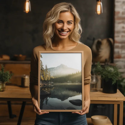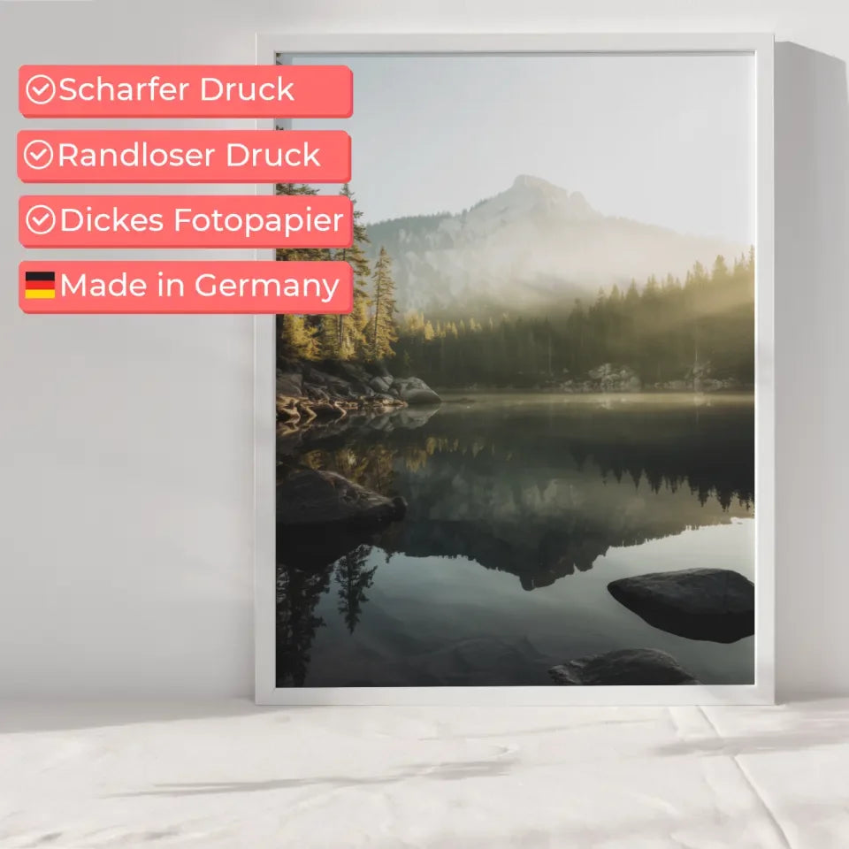 Entdecke unser einzigartiges Poster mit einer ruhigen Seeszene, das perfekt für dein Zuhause geeignet ist. Dieses beeindruckende Poster zeigt eine friedliche Landschaft, in der der stillgelegte See das Bild eines majestätischen Berges und des umgebenden Waldes wiederspiegelt. Die sanften Farben und die harmonische Komposition sorgen dafür, dass dieses Poster in jedem Raum zur Geltung kommt und eine wohlige Atmosphäre schafft.