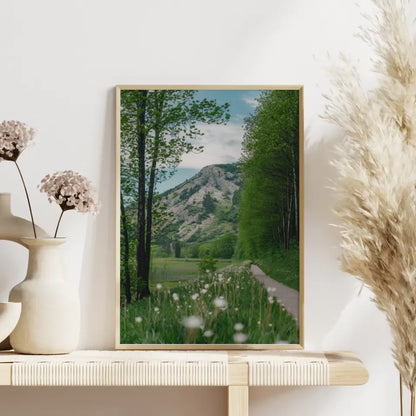 Im Hintergrund plätschern sanfte Wellen an das Ufer und vermitteln eine entspannende Stimmung, die ideal für Ihr Zuhause ist. Der schwach erkennbare Horizont verstärkt das Gefühl von Weite und Freiheit, das dieses Poster ausstrahlt. Verleihen Sie Ihrem Wohnraum eine beruhigende Note mit diesem einzigartigen Kunstwerk.