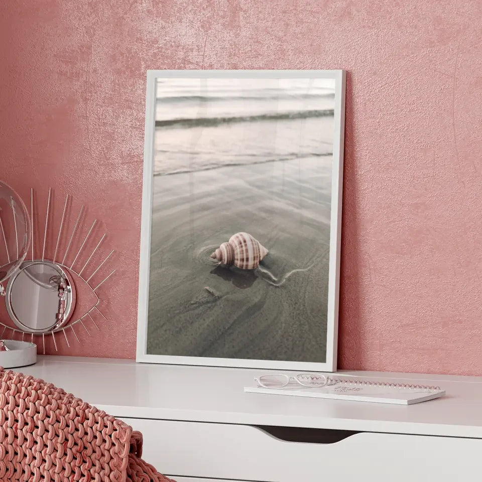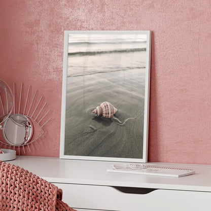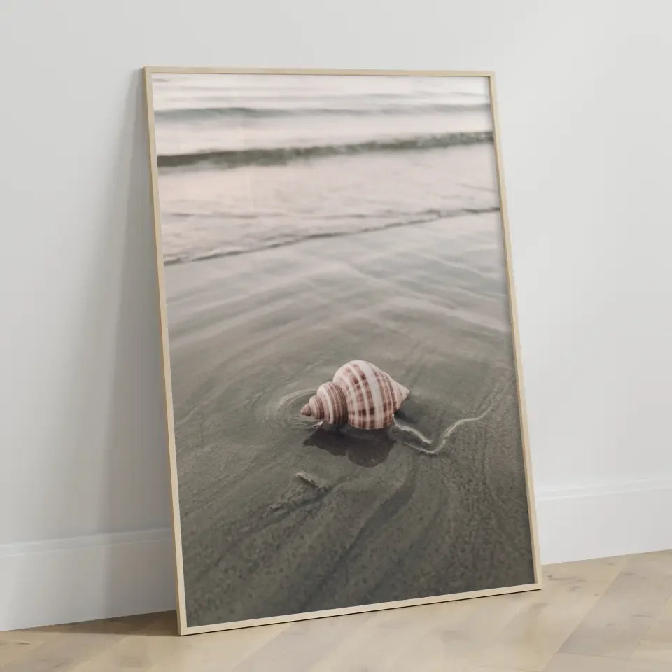 Ruhige Strandszene Poster mit Muschel und sanften Farben für dein Zuhause