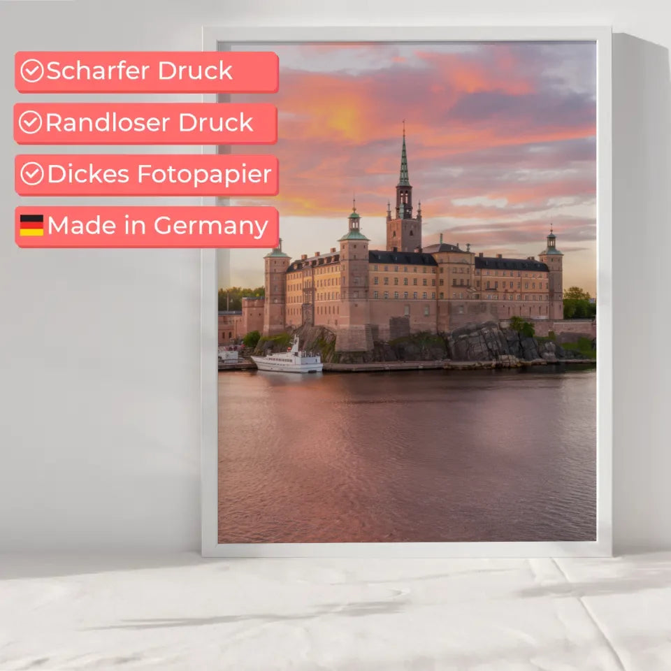 Unser Poster ist nicht nur ein Blickfang, sondern erzählt auch die Geschichte eines der berühmtesten Schlösser Schwedens. Die exquisite Farbtiefe und die detailreiche Darstellung machen das Poster zu einem hervorragenden Dekorationselement für Ihr Wohnzimmer, Schlafzimmer oder Büro. Verwöhnen Sie Ihre Wände mit einem Hauch nordischer Eleganz und lassen Sie sich von der Schönheit Stockholms inspirieren.