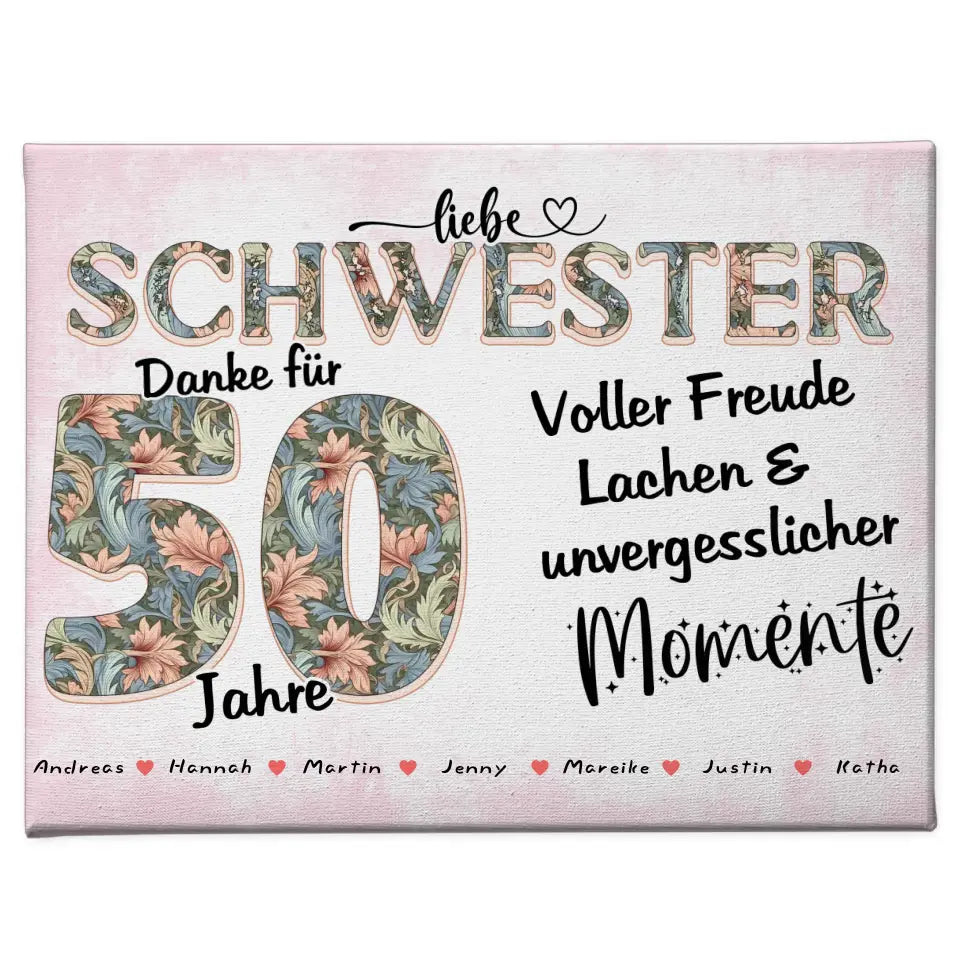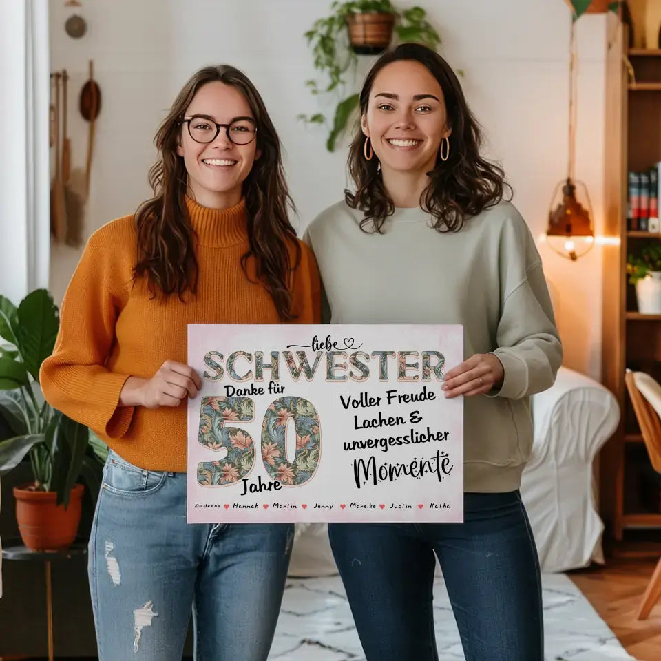 Du möchtest mal wieder etwas einzigartiges verschenken? Unsere Schwester Leinwand personalisiert Momente Mit Namen zum 60 Geburtstag ein schönes und einzigartiges personalisiertes Geschenk.