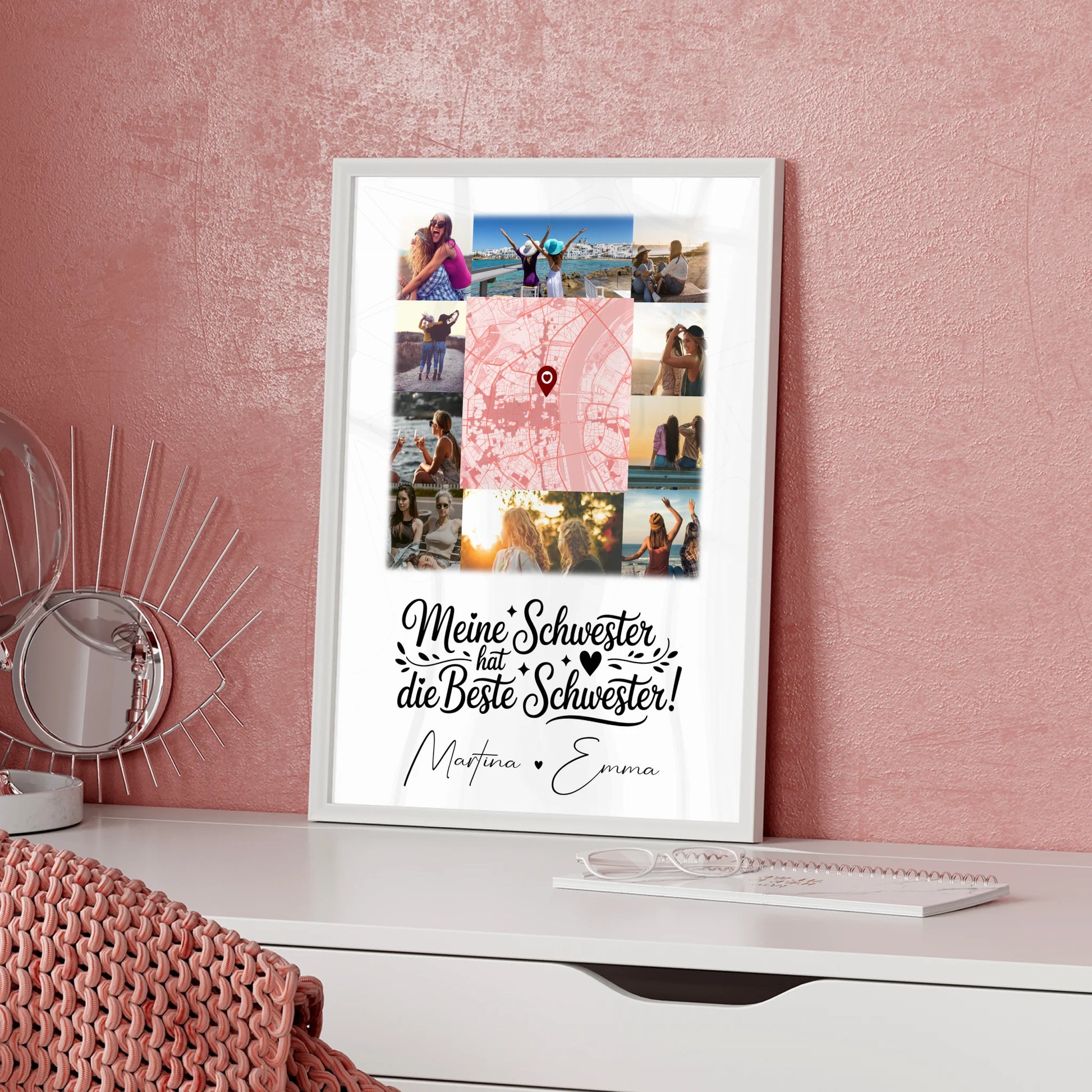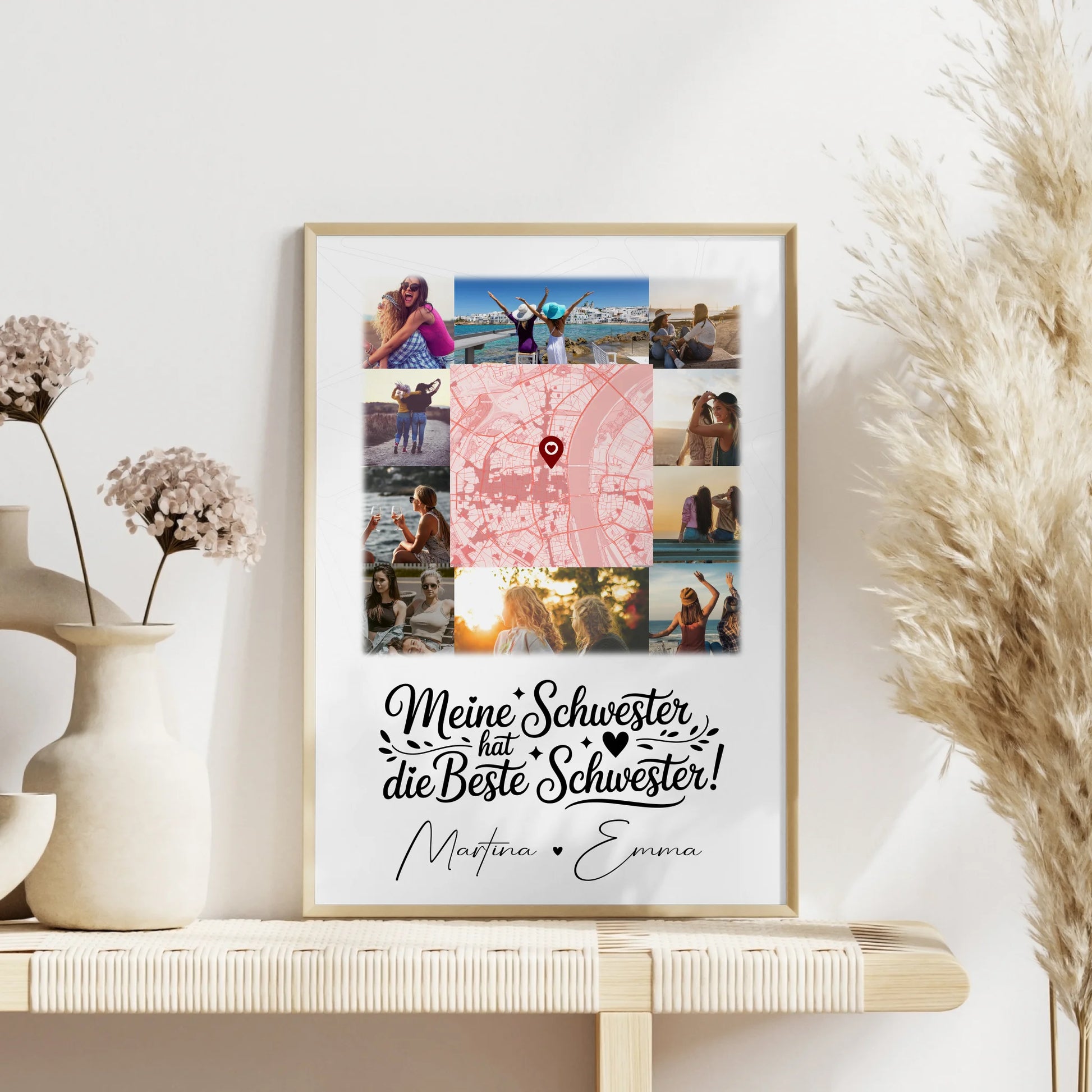 Schwester Poster 10 Fotos Karte Mitte Meine Schwester hat die beste Schwester