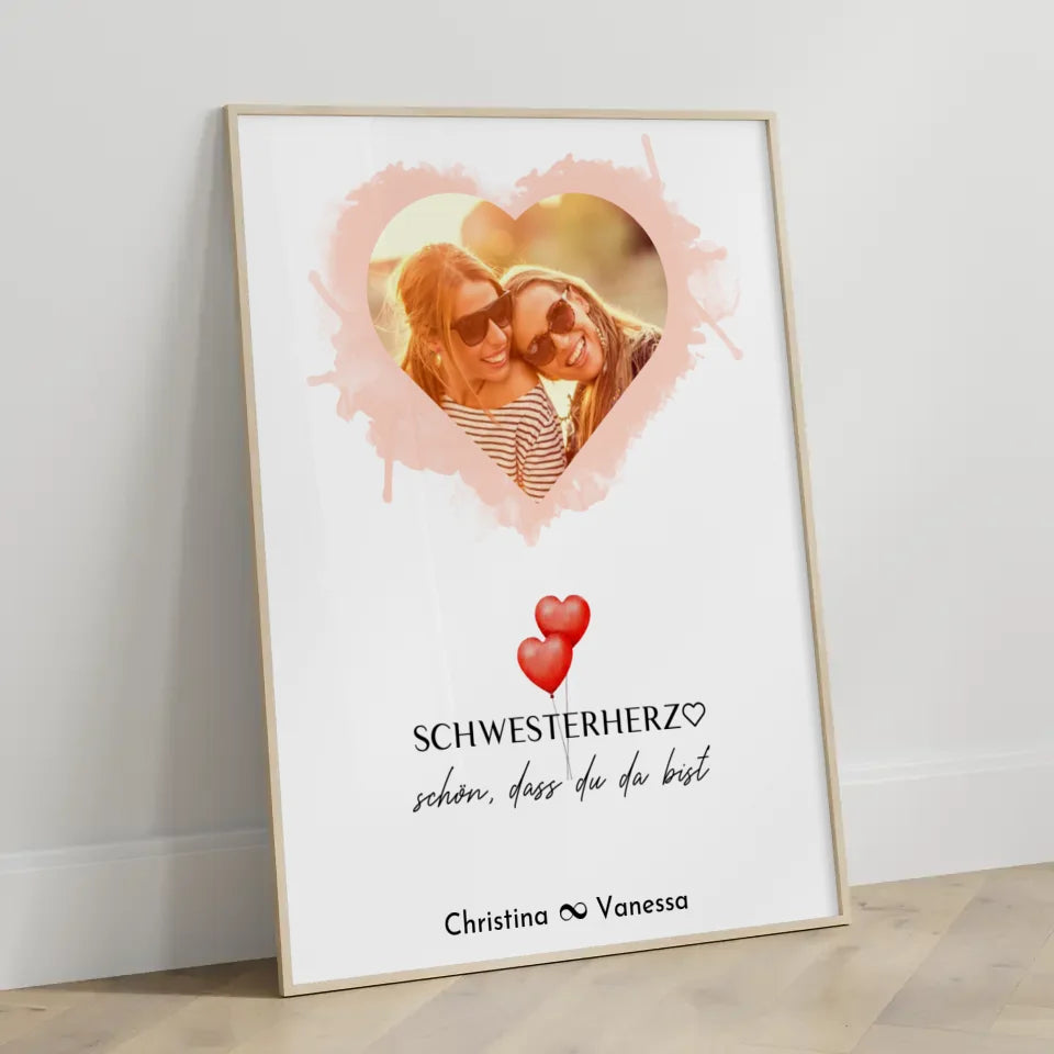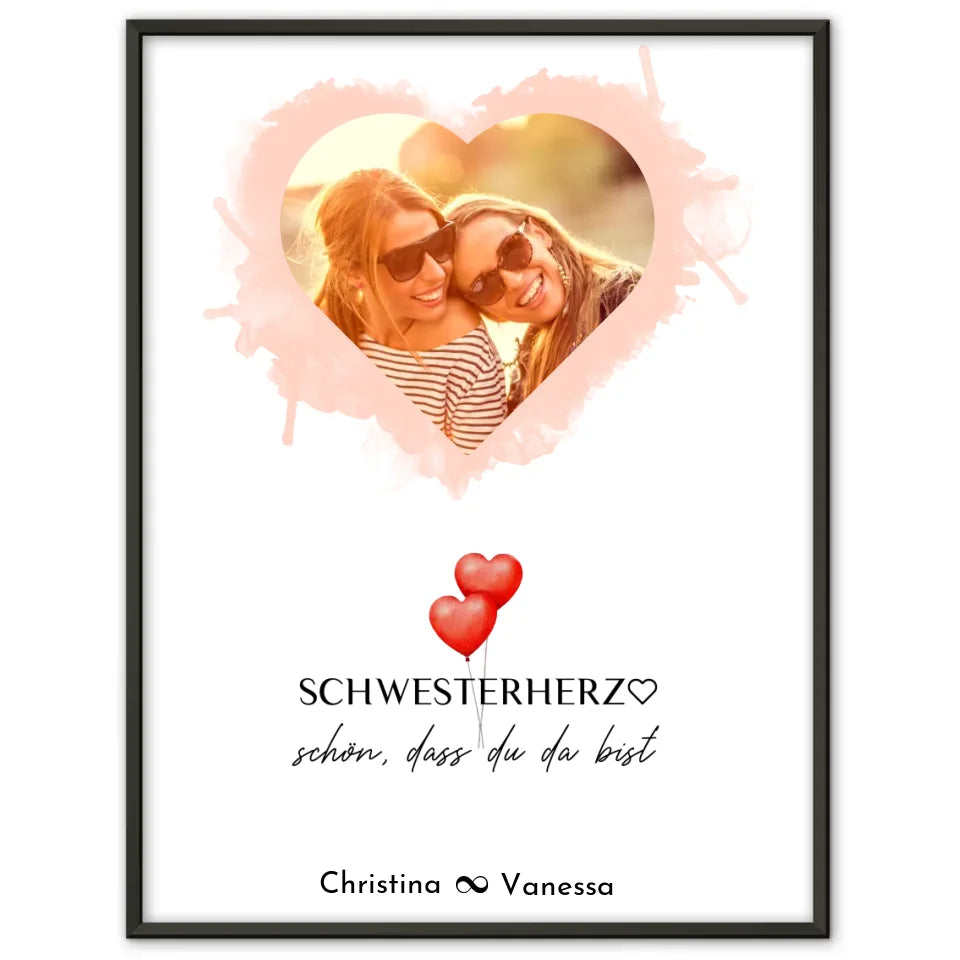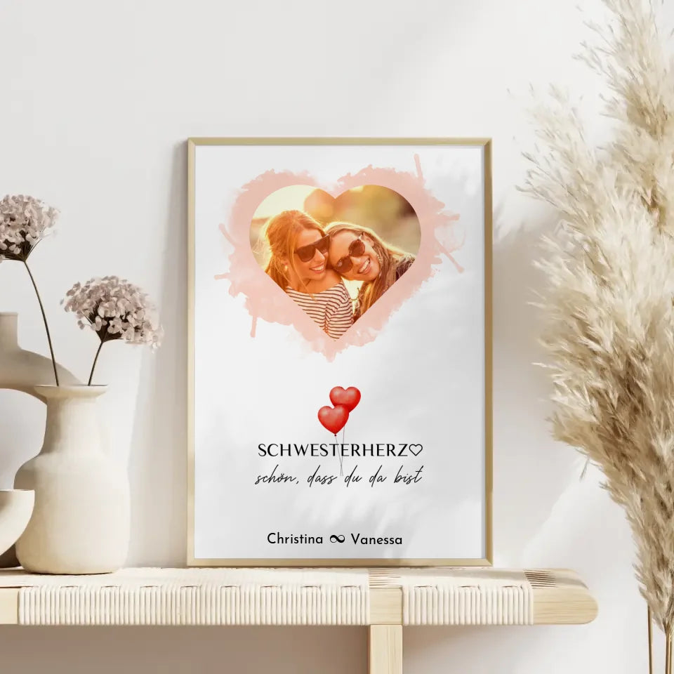 Schwester Poster Personalisiert Beste Schwester der Welt Herz Foto & Eigener Spruch