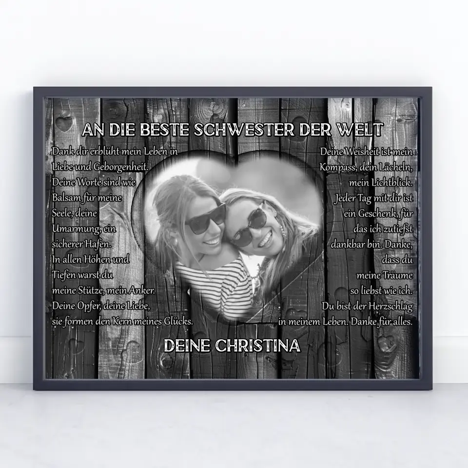 Du magst einzigartige Geschenke? Dann ist Unser Schwester Poster personalisiert Danke Schwester Schwarz Weiß ein einzigartiges personalisiertes Geschenk.