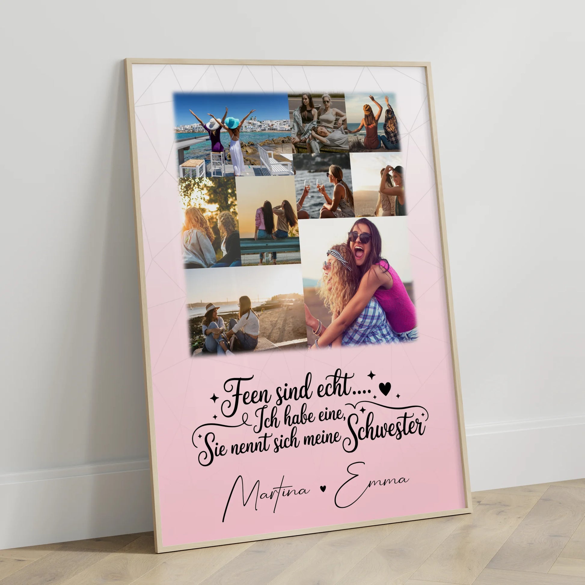 Schwester Poster Personalisiert Geschenk mit 9 Fotos Feen sind echt