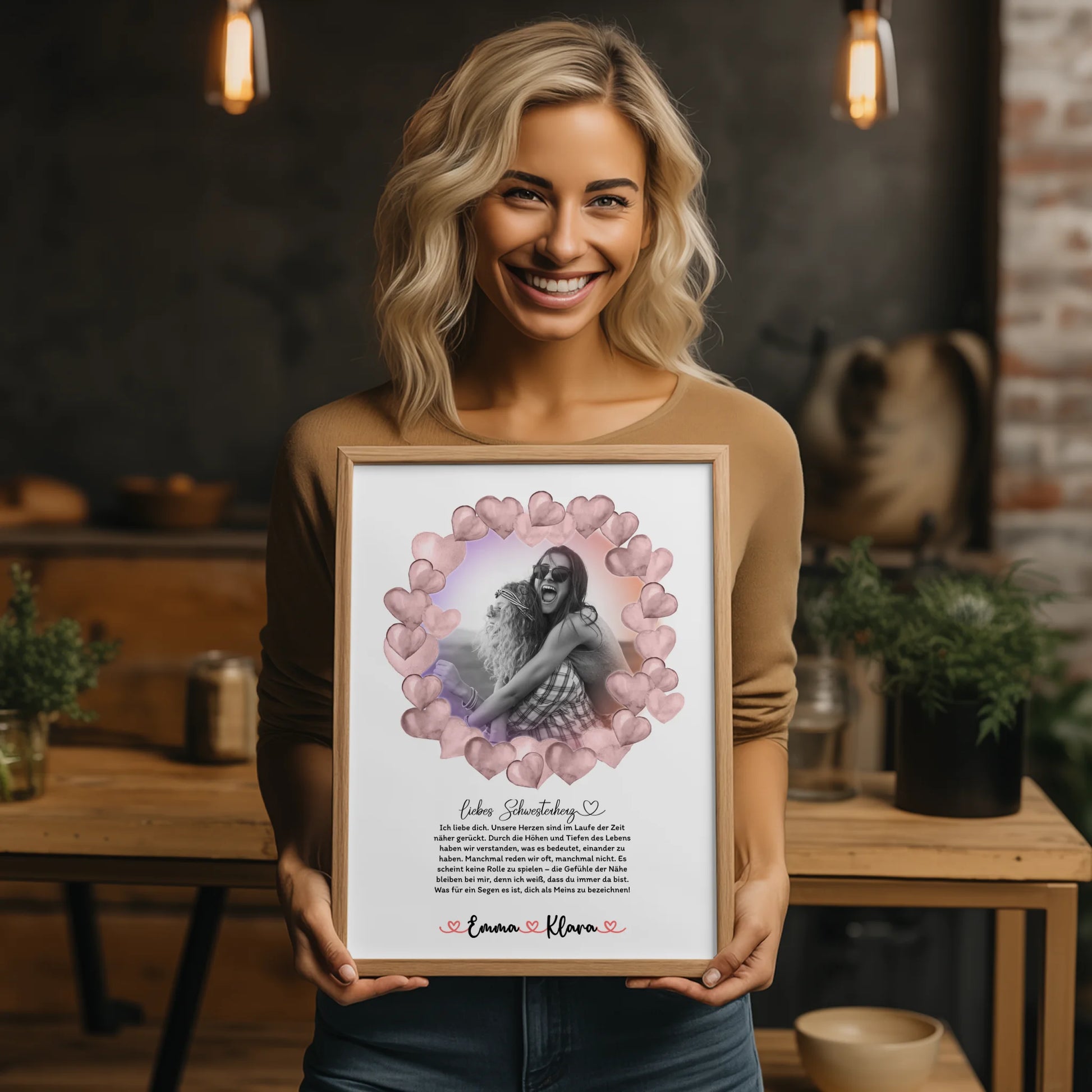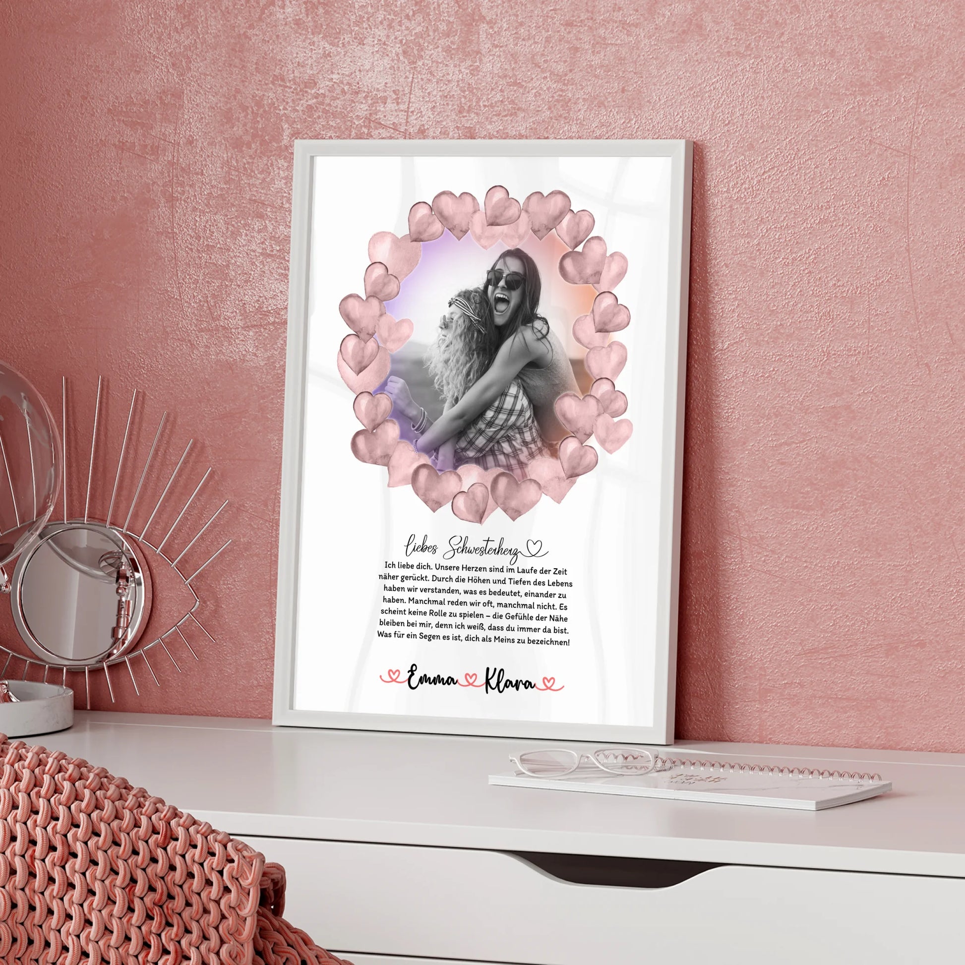 Schwester Poster Personalisiert Ich Liebe Dich mit Foto, Namen & Wunschtext
