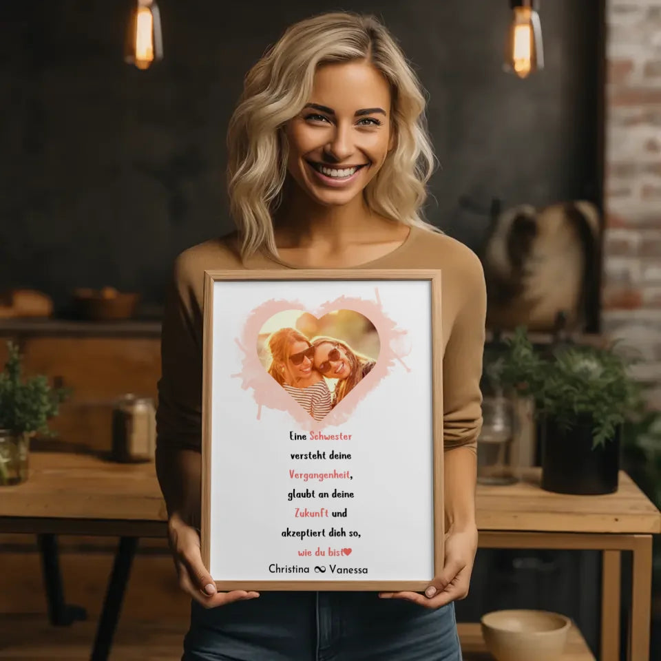 Du suchst ein tolles Geschenk? Dann ist unser Schwester Poster Personalisiert Keine Sorge Schwester Herz Foto & Wunschtext das perfekte personalisierbare Geschenk.