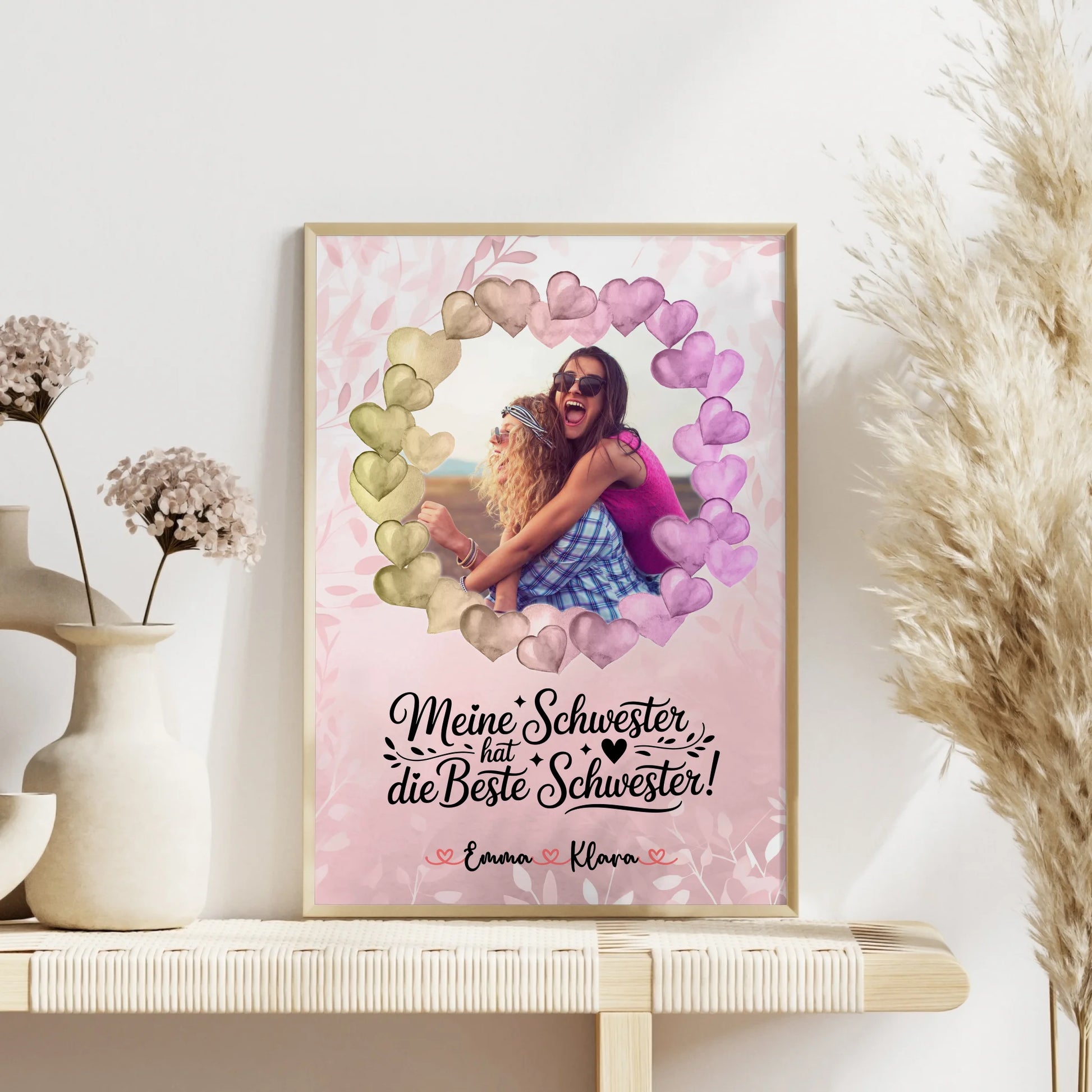 Schwester Poster Personalisiert mit 1 Foto, Hintergrundbild, Namen & Wunschtext
