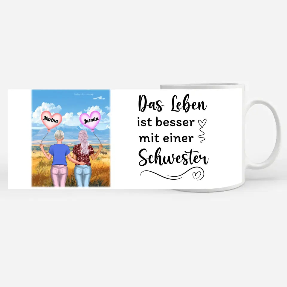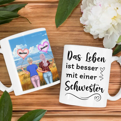 Diese personalisierte Tasse Basic ist perfekt für Schwestern .Also perfekt zum Geburtstag, zu Weihnachten oder einfach als nette Aufmerksamkeit .